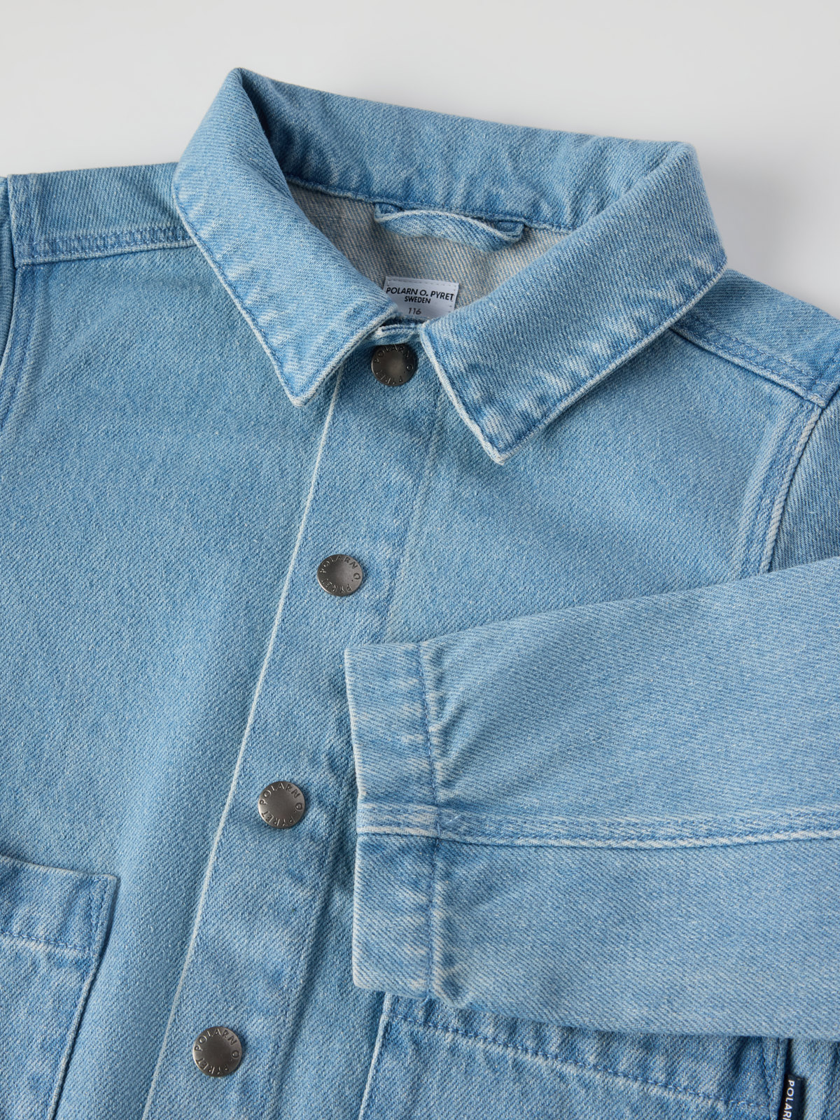 Jacke aus weichem, bequemem Denim mit leichtem Stretch – perfekt für schöne Frühlings- und Herbsttage! Die Jacke wird mit Druckknöpfen geschlossen und vorne sind zwei große Taschen aufgesetzt. Alle unsere Denimprodukte werden seit Frühjahr 2022 aus GOTS-zertifizierter Baumwolle gefertigt!