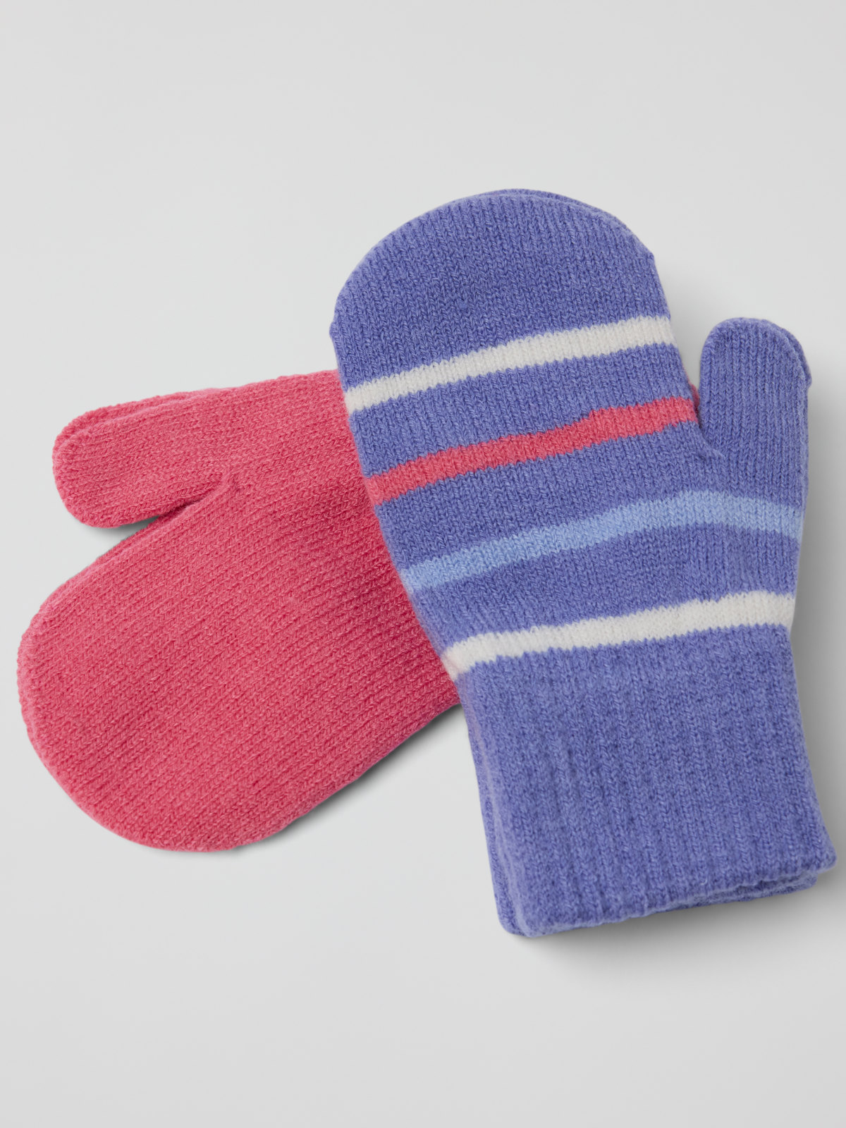 Die Fäustlinge werden im 2er-Pack verkauft: ein Paar einfarbig, das andere in unserem klassischen Streifenmuster.