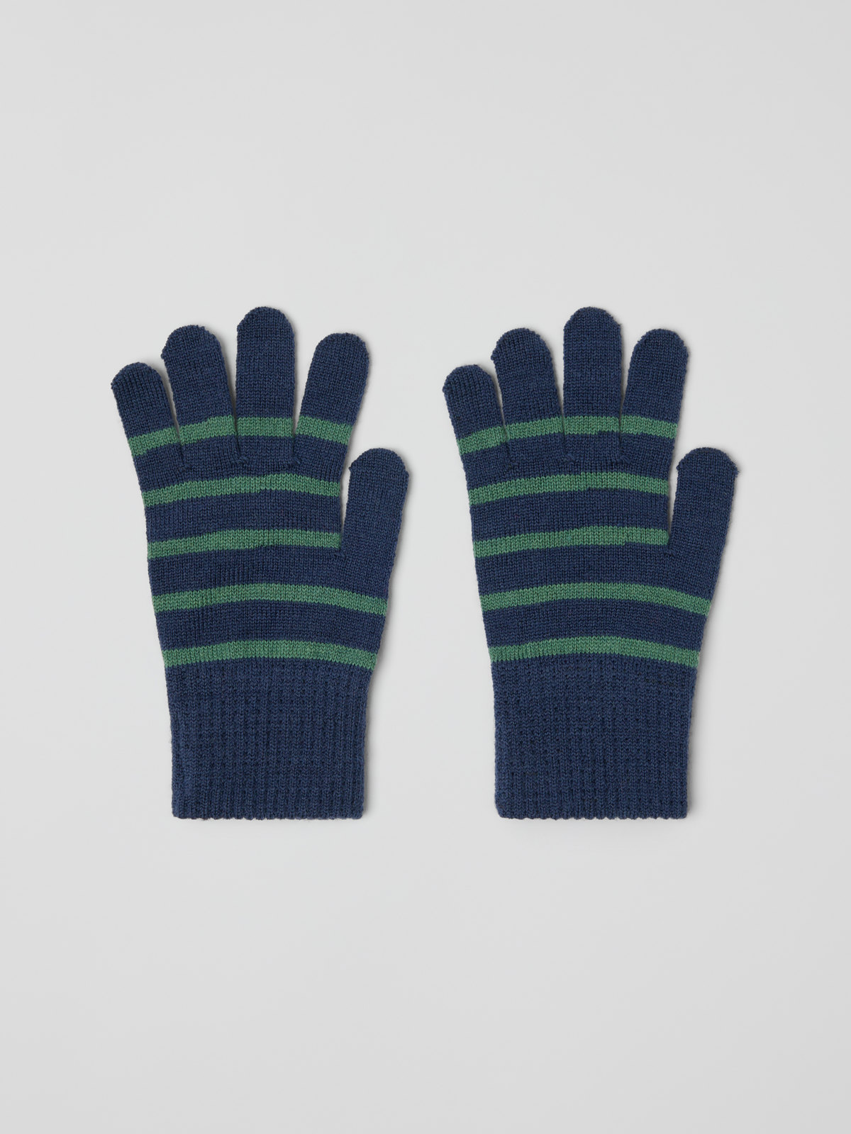 Strick-Fingerhandschuhe aus Wollmix. Die Handschuhe in unseren klassischen Streifen passen sich der Größe der Hand an.