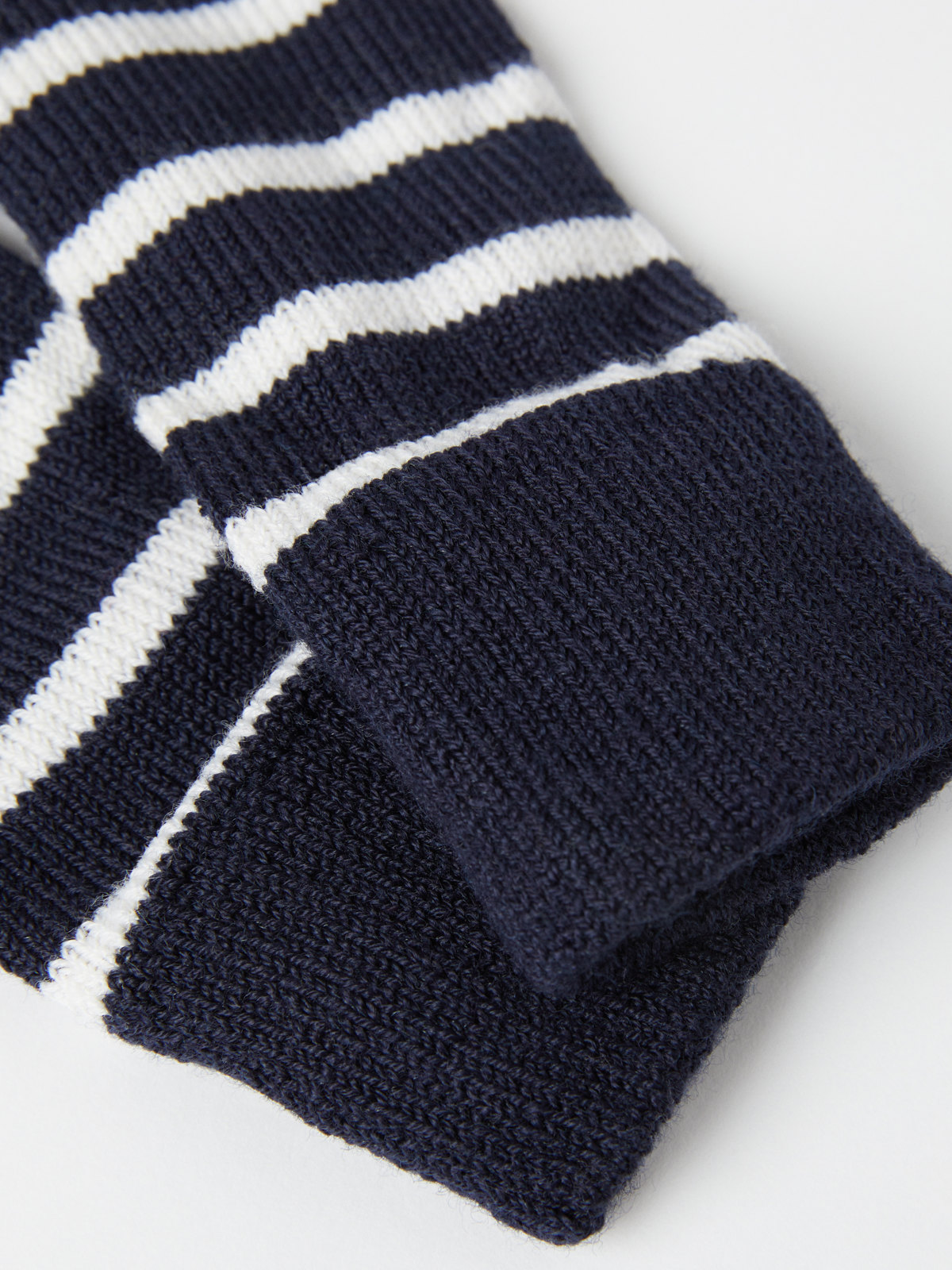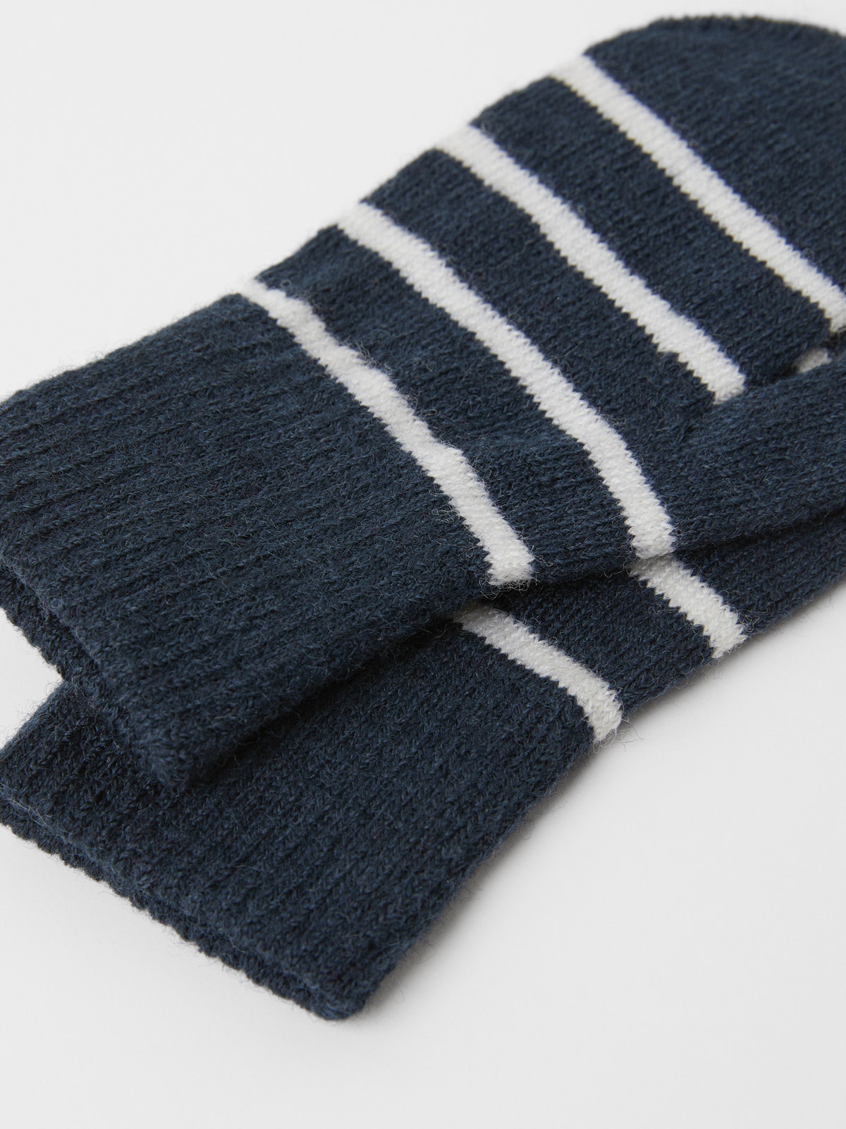 Gestreifte gestrickte Fäustlinge aus Wollmix. Die Fäustlinge haben unser klassisches Streifenmuster und passen sich der Handgröße an. Größe 0 kommt ohne Daumen.