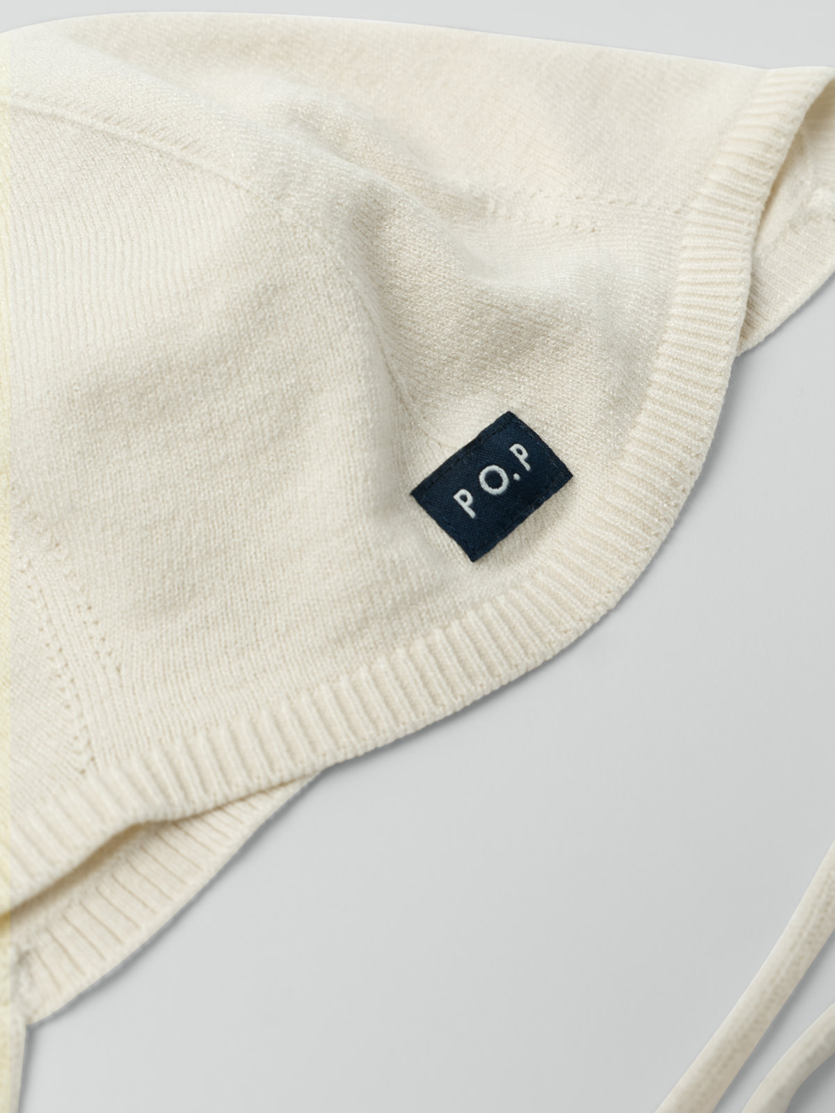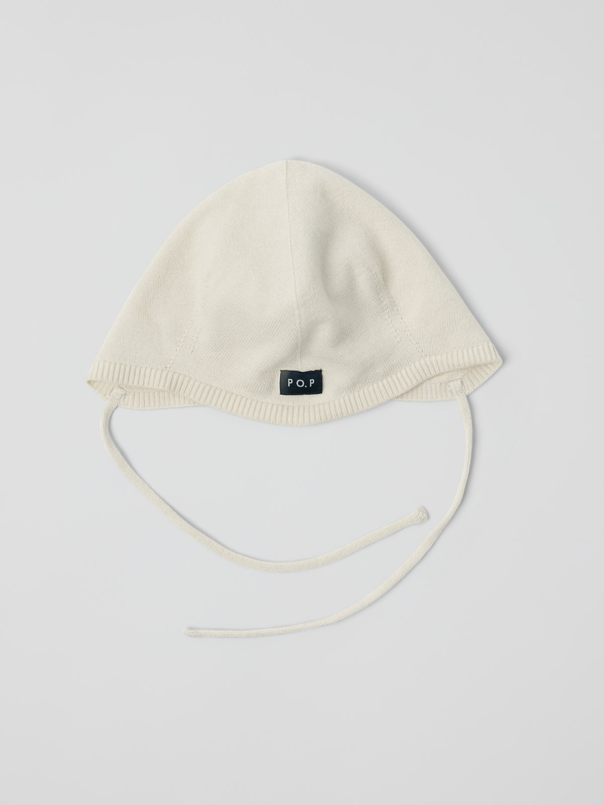Gestrickte Helmmütze aus einer weichen, angenehmen Mischung aus Ecovero™ Viskose und recyceltem Polyester – ideal für extra Wärme für die Kleinsten. Die Mütze bedeckt die Ohren und bleibt dank des weichen Bindebands unter dem Kinn sicher an Ort und Stelle.