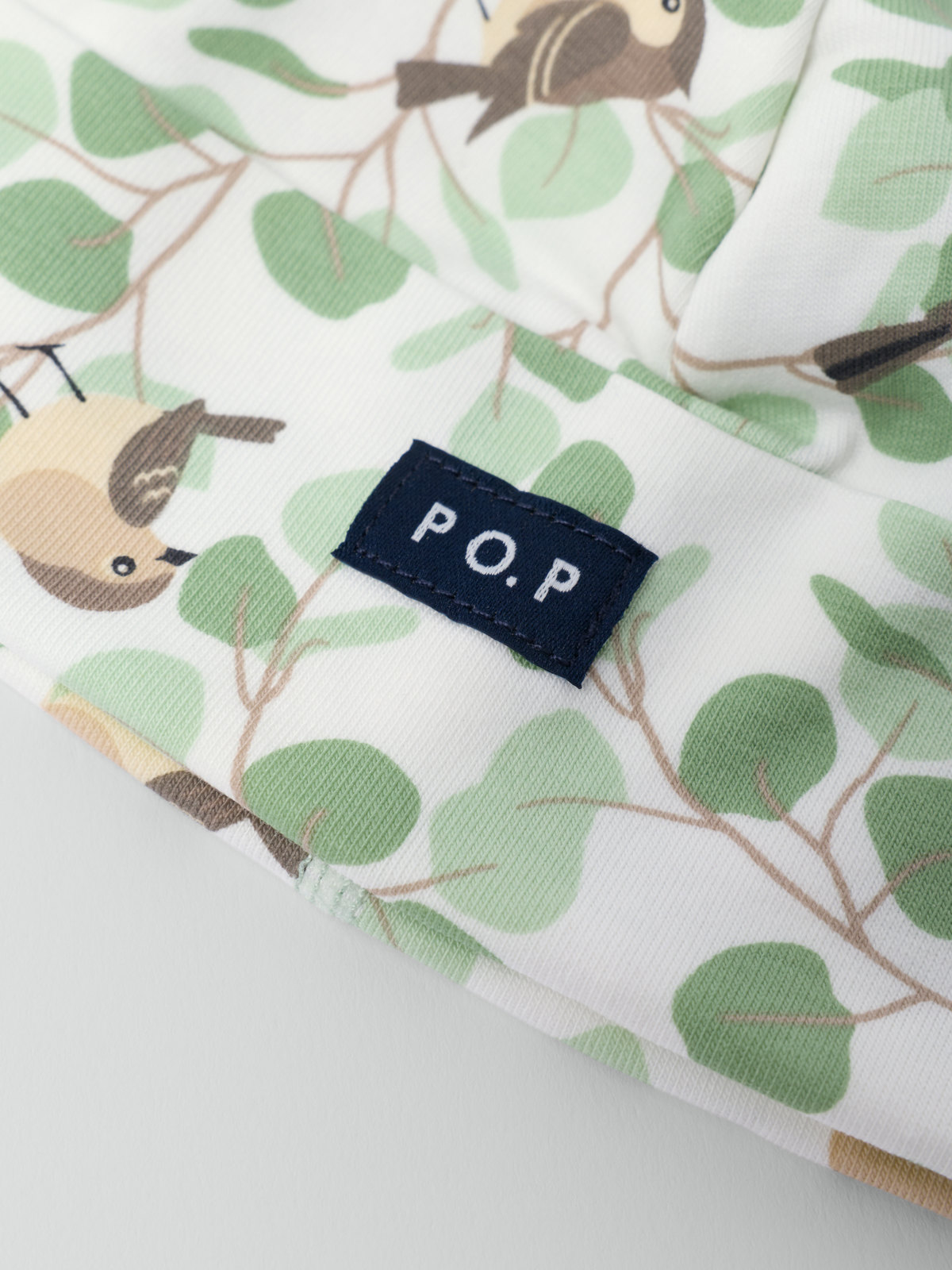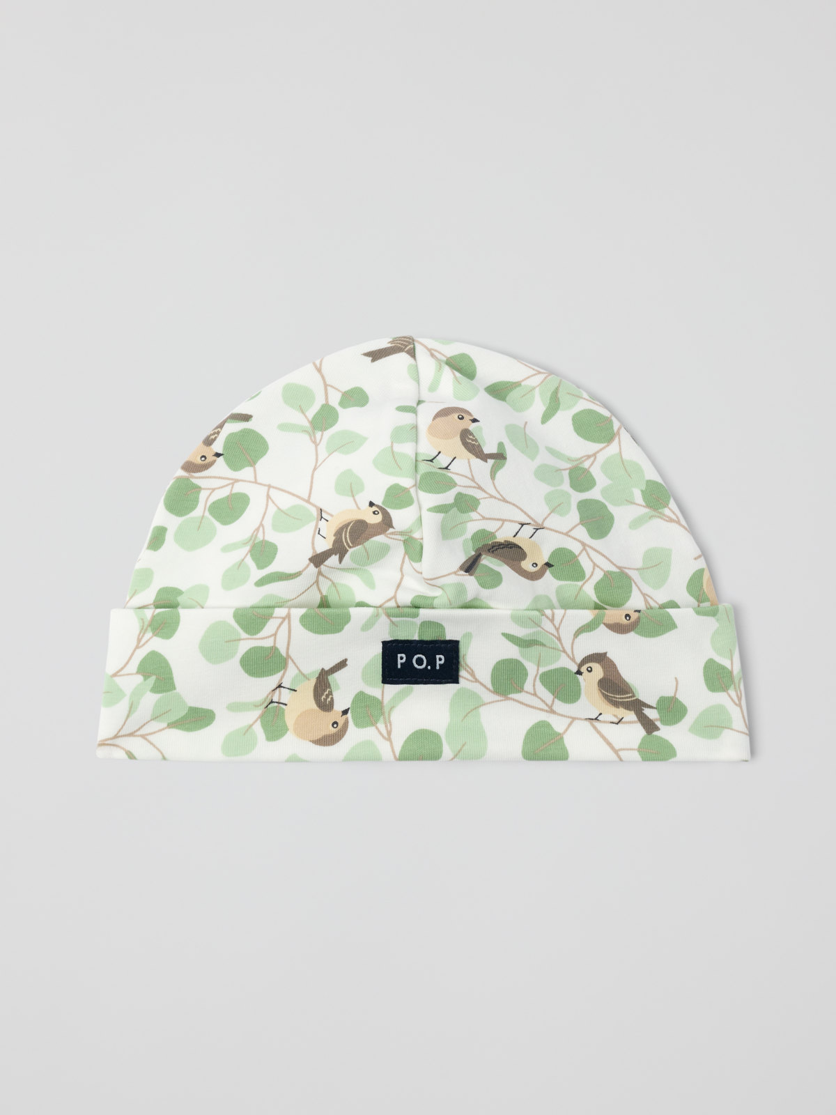 Superweiche Erstlingsmütze für Babys aus Bio-Baumwolltrikot. Die Mütze hat besonders weiche Nähte, die sanft zur empfindlichen Babyhaut sind.