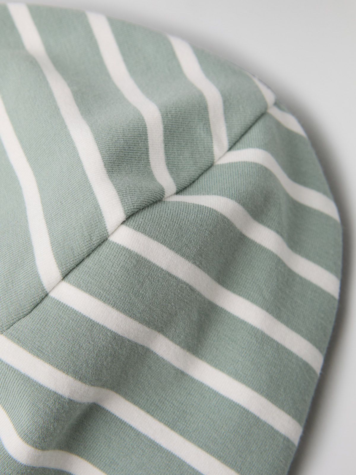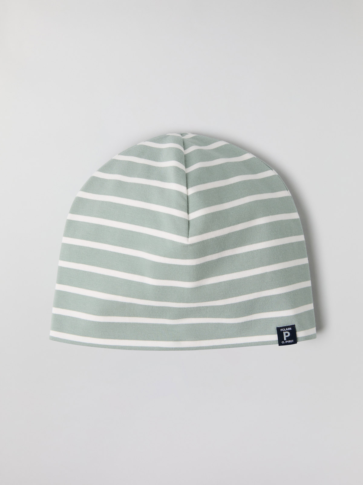 Dünne Mütze mit unseren klassischen Streifen aus weichem Bio-Baumwolltrikot. Perfekt für Outdoor-Aktivitäten im Frühling und Herbst oder unterm Fahrradhelm!