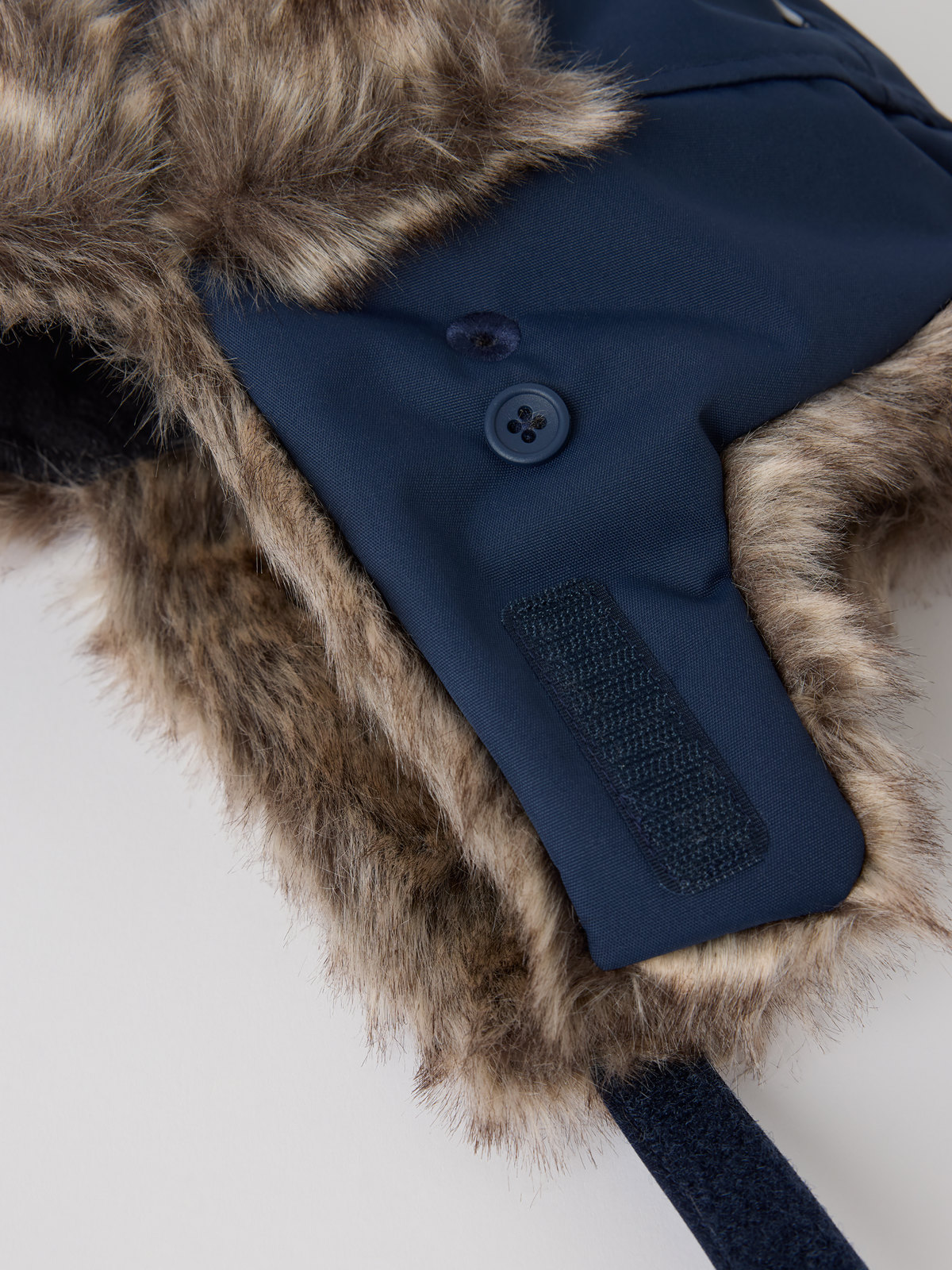 Wind- und wasserdichter Trapperhut ARCTIC mit wärmendem Fleecefutter aus recyceltem Polyester – eine robuste Mütze, die schützt. ARCTIC ist unsere wärmste Bekleidungslinie und wurde für besonders kalte Winterbedingungen entwickelt. Die Mütze ist atmungsaktiv und wird unter dem Kinn mit Klettverschluss geschlossen. Die kleinen Ohrenklappen lassen sich mit Knöpfen oben oder unten befestigen.