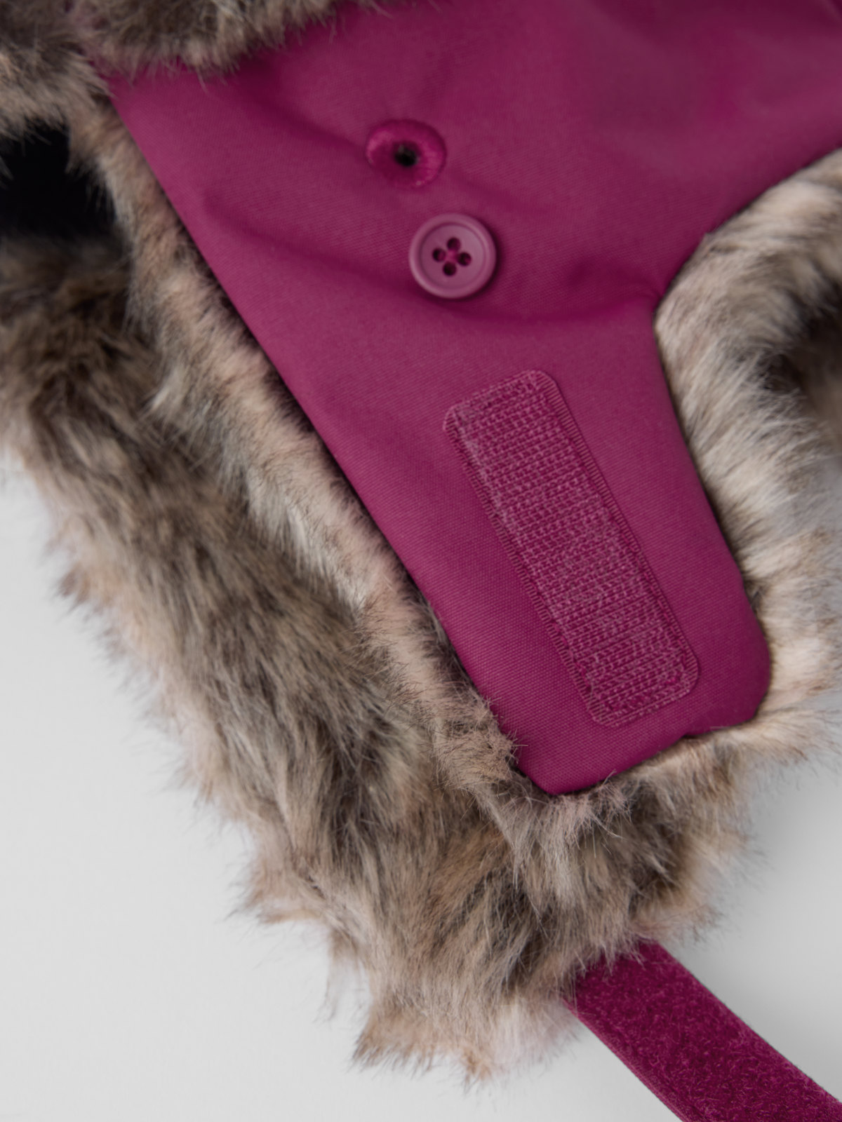 Wind- und wasserdichter Trapperhut ARCTIC mit wärmendem Fleecefutter aus recyceltem Polyester – eine robuste Mütze, die schützt. ARCTIC ist unsere wärmste Bekleidungslinie und wurde für besonders kalte Winterbedingungen entwickelt. Die Mütze ist atmungsaktiv und wird unter dem Kinn mit Klettverschluss geschlossen. Die kleinen Ohrenklappen lassen sich mit Knöpfen oben oder unten befestigen.