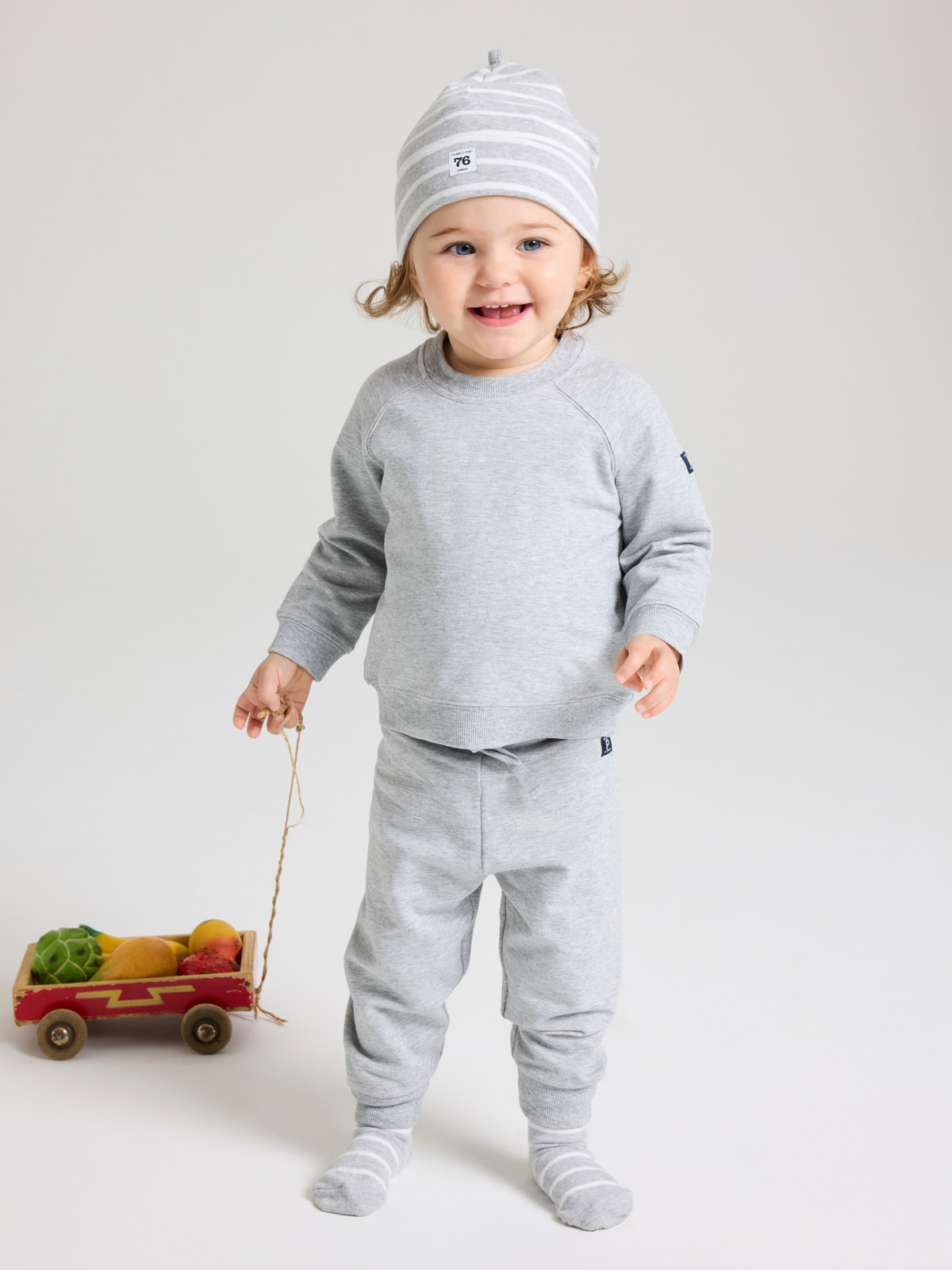 Hose in weicher Sweatshirtqualität mit angerauter Innenseite aus 100 % Bio-Baumwolle. Ein bequemes Lieblingsteil, das lange weitergeliebt werden kann!