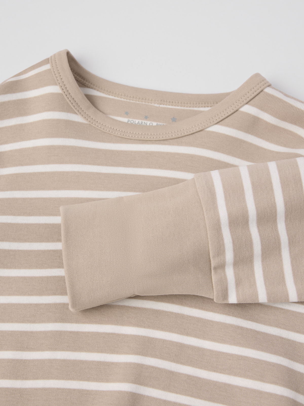 Zweiteiliger Schlafanzug aus weicher Bio-Baumwolle mit unseren klassischen Streifen. Das Oberteil hat extra lange Ärmelbündchen zum Umschlagen. Die Hose mit elastischem Bund hat extra lange Bündchen an den Beinabschlüssen.