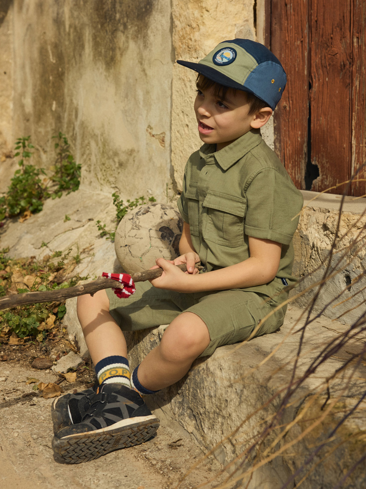 5-Panel-Kappe aus 100 % Bio-Baumwolltrikot. Diese Teil wird dein Kind lange lieben! Sie hat umstickte Öffnungen für eine gute Luftzirkulation und eine kleine Applikation auf der Vorderseite sowie Gummizug hinten für eine bequeme Passform.