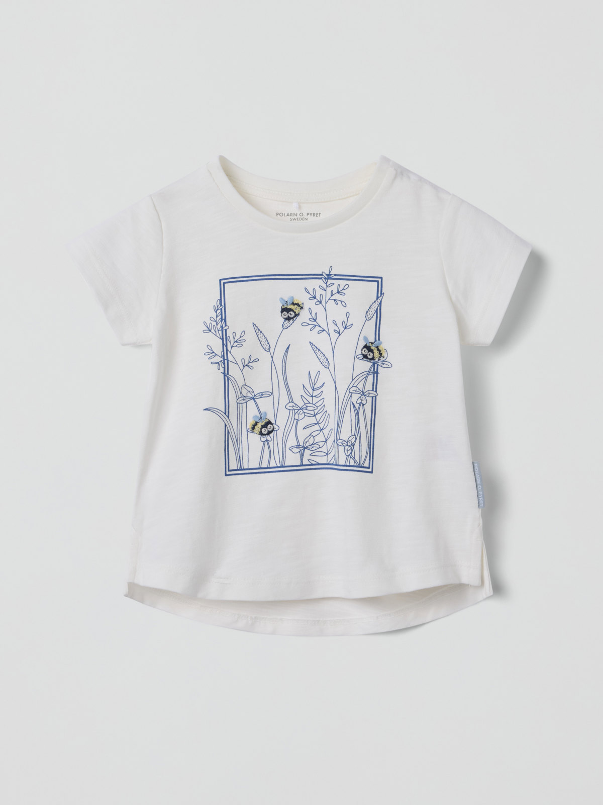 Kurzärmliges Shirt aus weichem und bequemem Slubmaterial mit abgerundetem Saum. Das Shirt aus 100 % Bio-Baumwolle ist mit einer bezaubernden Stickerei auf dem Vorderteil verziert.
