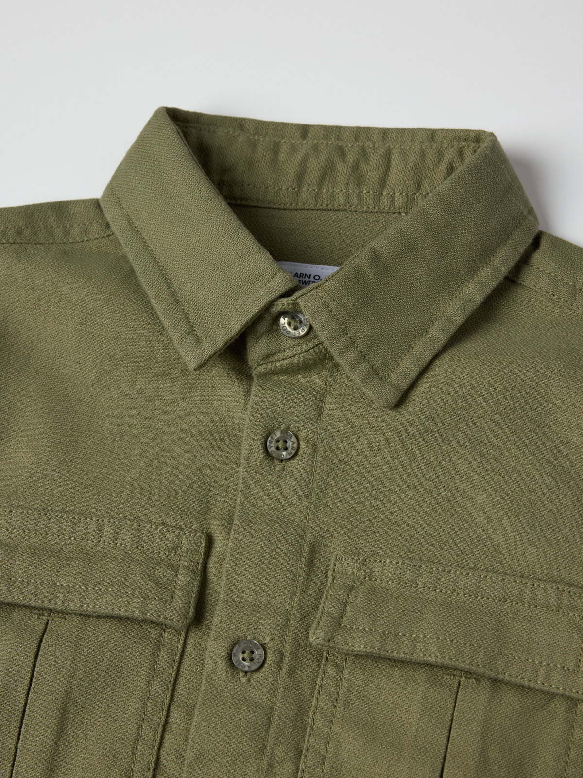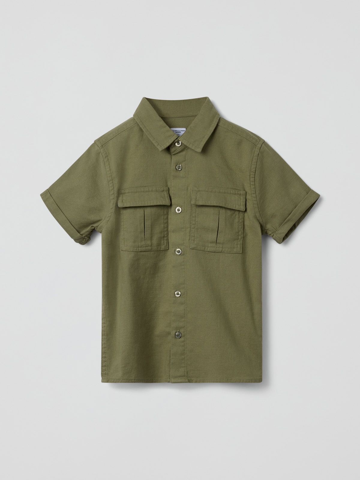 Weiches Cargohemd aus 100 % Bio-Baumwolle – ideal für aufregende Sommerabenteuer! Das Hemd wird mit Knöpfen geschlossen und hat einen weichen Kragen und zwei große Brusttaschen.