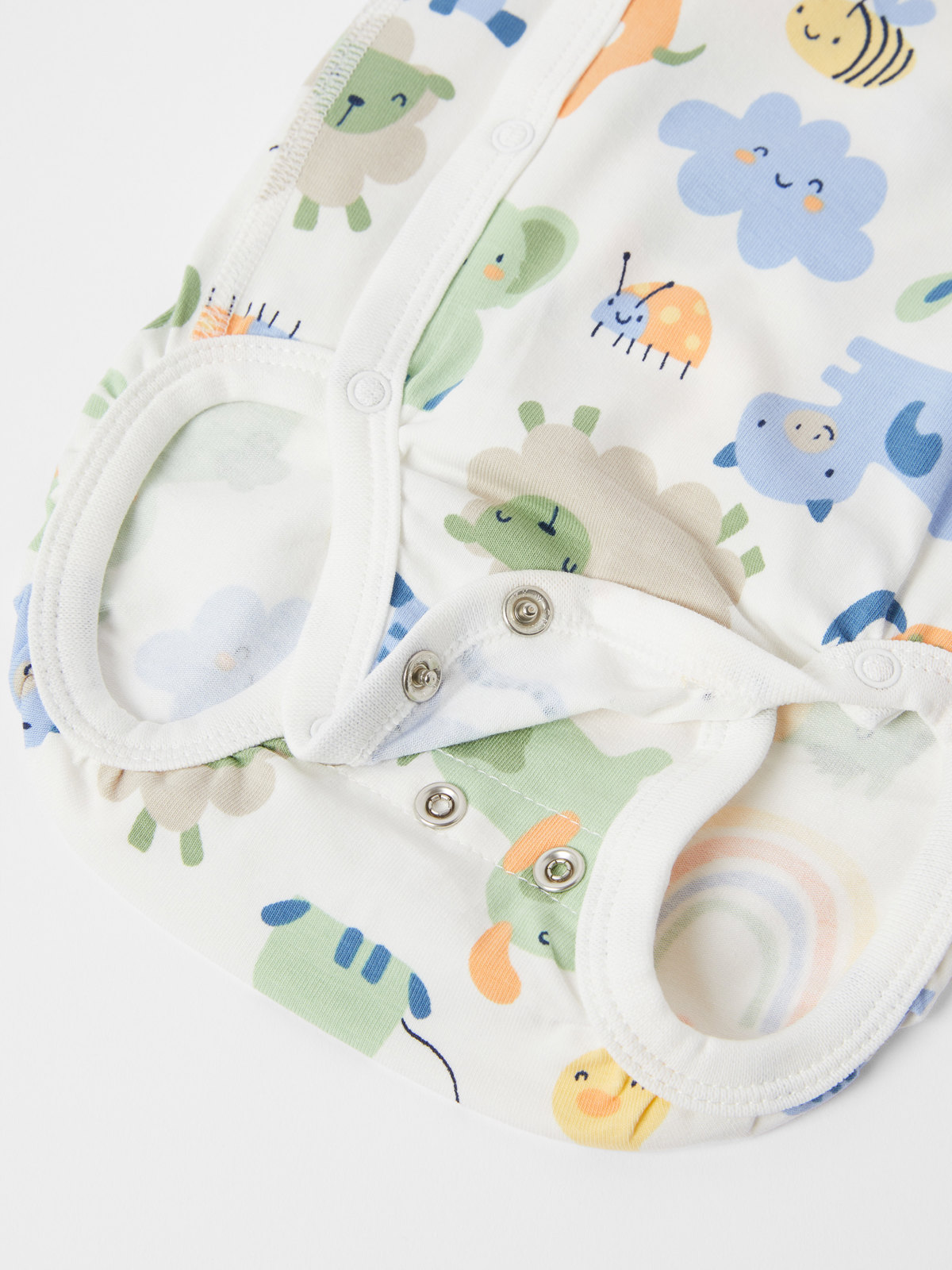 Verlängerbarer Wickelbody aus 100 % Bio-Baumwolle. Dank unserer praktischen Lösung mit einer zusätzlichen Reihe an Druckknöpfen im Schritt und Ärmelbündchen zum Umschlagen kann der Body mit deinem Baby mitwachsen!