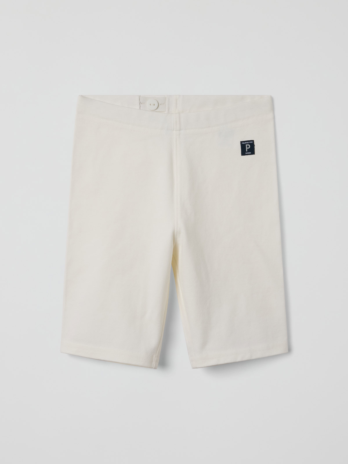 Einfarbige Radlerhose aus weicher Bio-Baumwolle: die perfekte Sommershorts! Der elastische Bund kann an der Innenseite mit einem Knopflochgummi reguliert werden. Die Short sind in mehreren Farben erhältlich, die gut zur gesamten Kollektion passen.