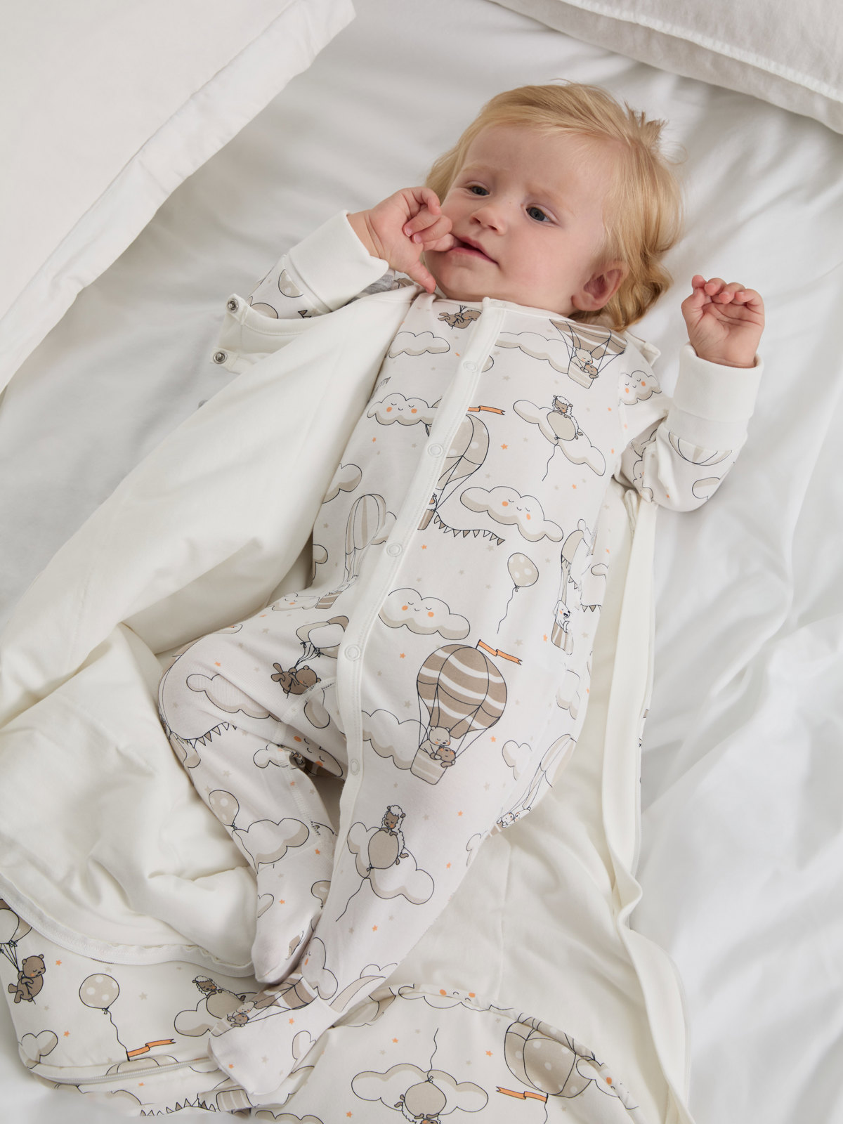 Schlafoverall aus weicher Bio-Baumwolle für die Allerkleinsten. Der Schlafoverall hat einen niedlichen Luftballonprint.