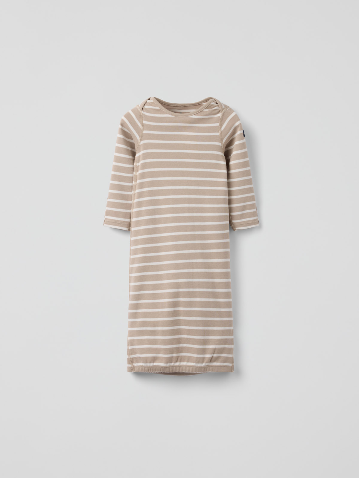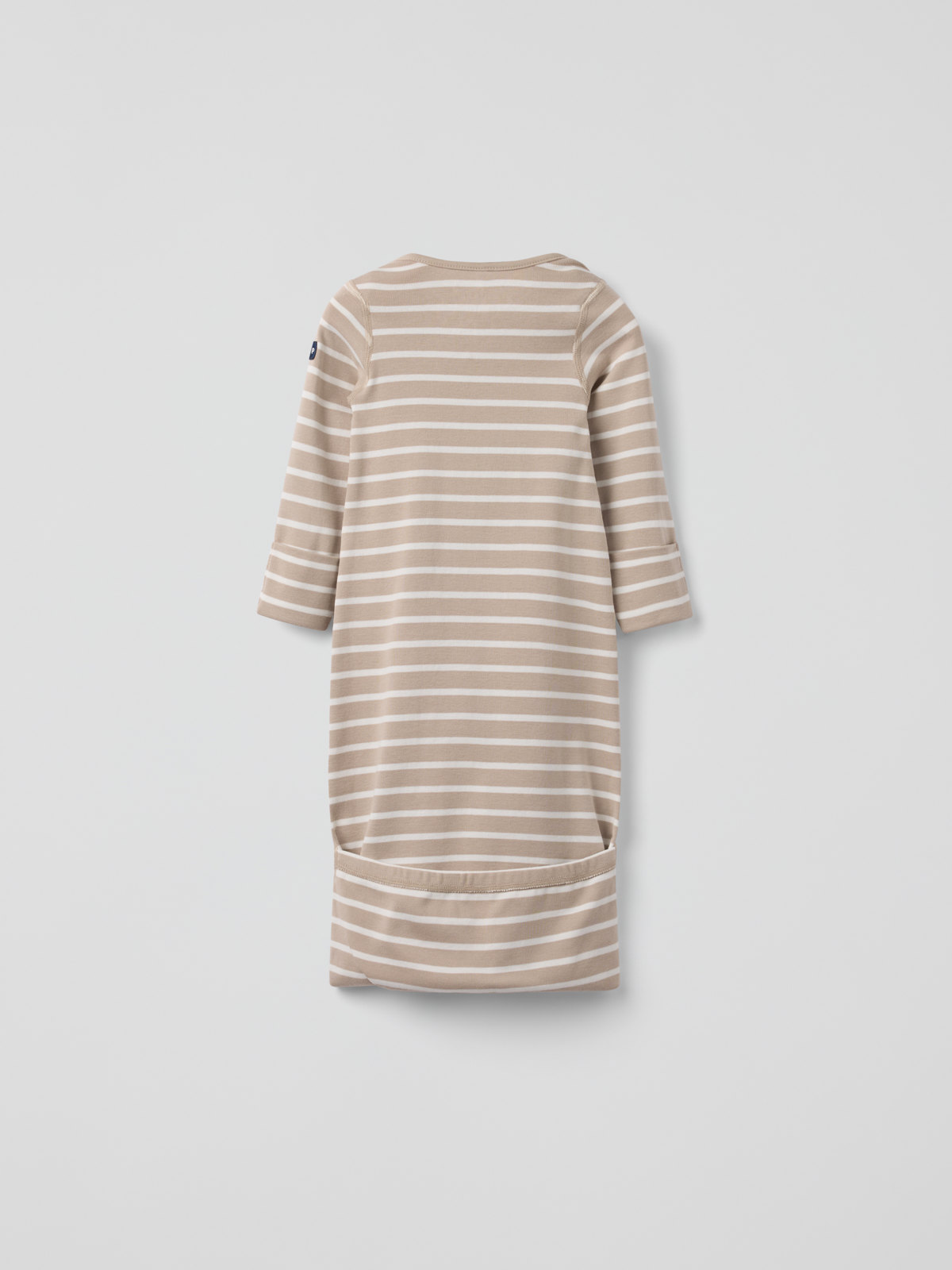 Gestreifter Schlafsack aus dünnem Baumwolljersey – gemütlich im Kinderwagen und im Bett! Der Schlafsack hat lange Ärmel und überlappende Schultern für ein praktisches An- und Ausziehen. Die besonders weichen Nähte sind sanft zur empfindlichen Haut. Der Schlafsack hat unten einen Gummizug.