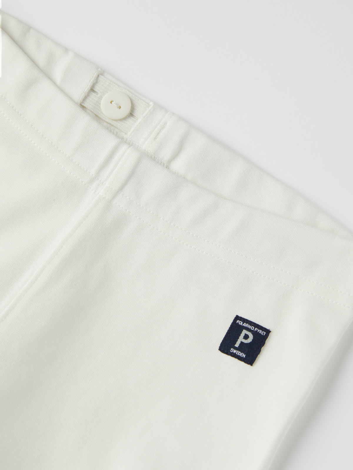 Der elastische Bund kann an der Innenseite mit einem Knopflochgummi reguliert werden.