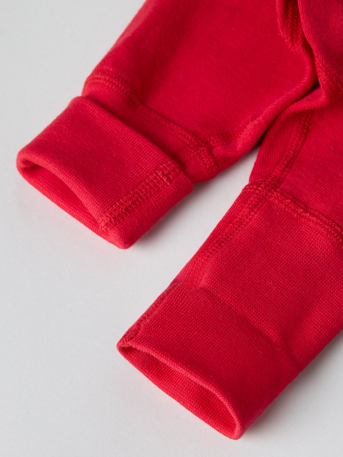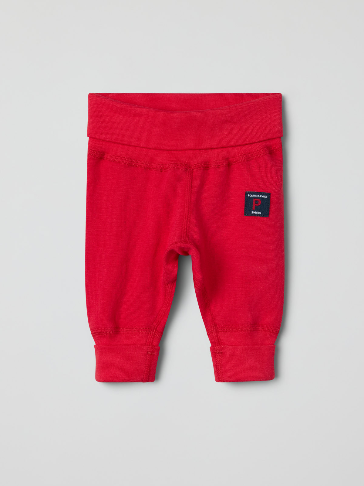 Einfarbige Hose für Neugeborene aus Bio-Baumwolle. Wenn dein Kind größer geworden ist, kannst du die Bündchen in der Taille und an den Beinabschlüssen herunterschlagen.