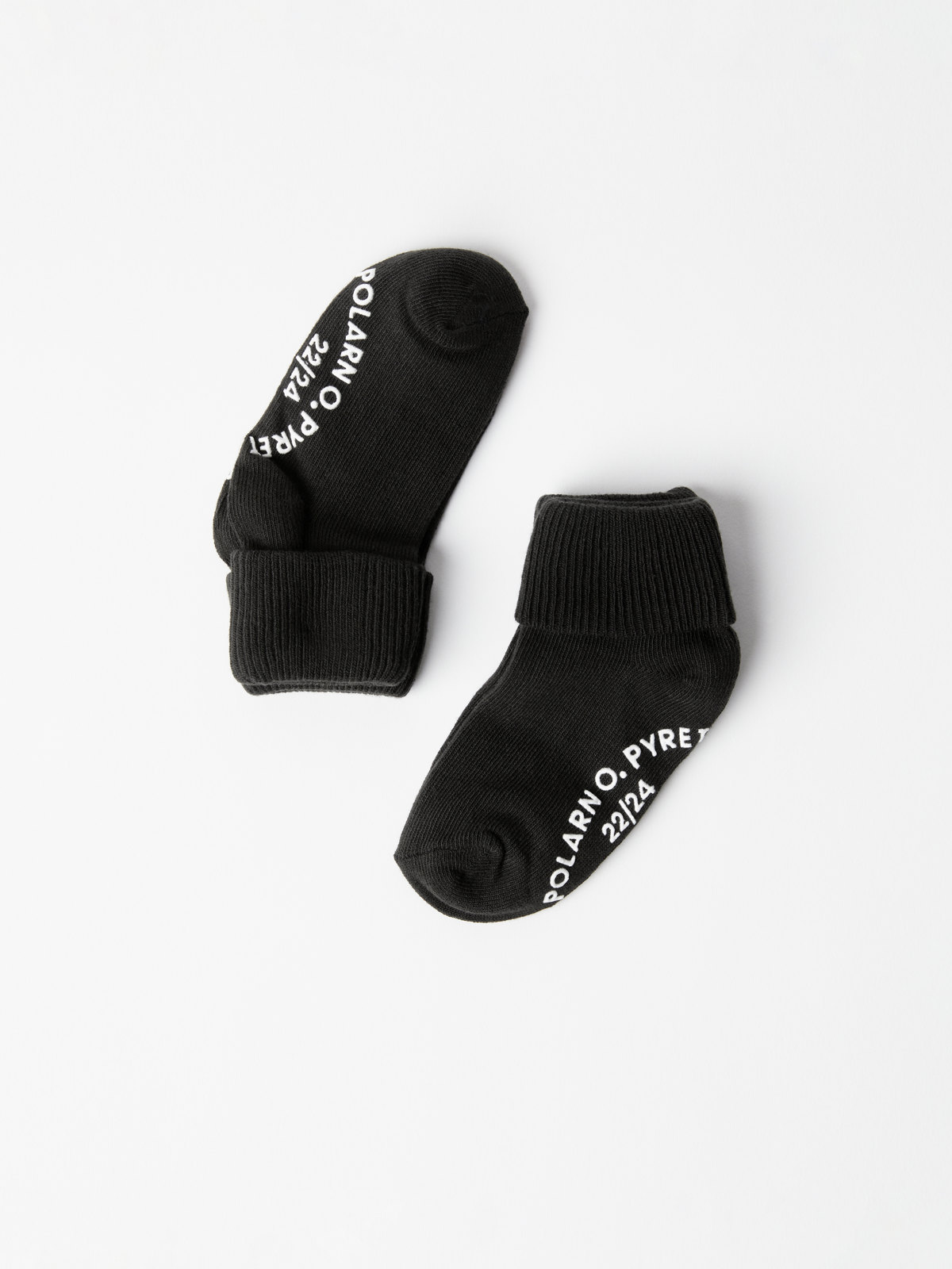 Zweier-Pack Söckchen mit rutschhemmenden Noppen. Die Söckchen aus weicher Bio-Baumwolle haben Bündchen zum Umschlagen. Dieser Artikel ist Teil unseres 3-für-2-Angebots. Es kann nicht mit anderen Angeboten kombiniert werden.