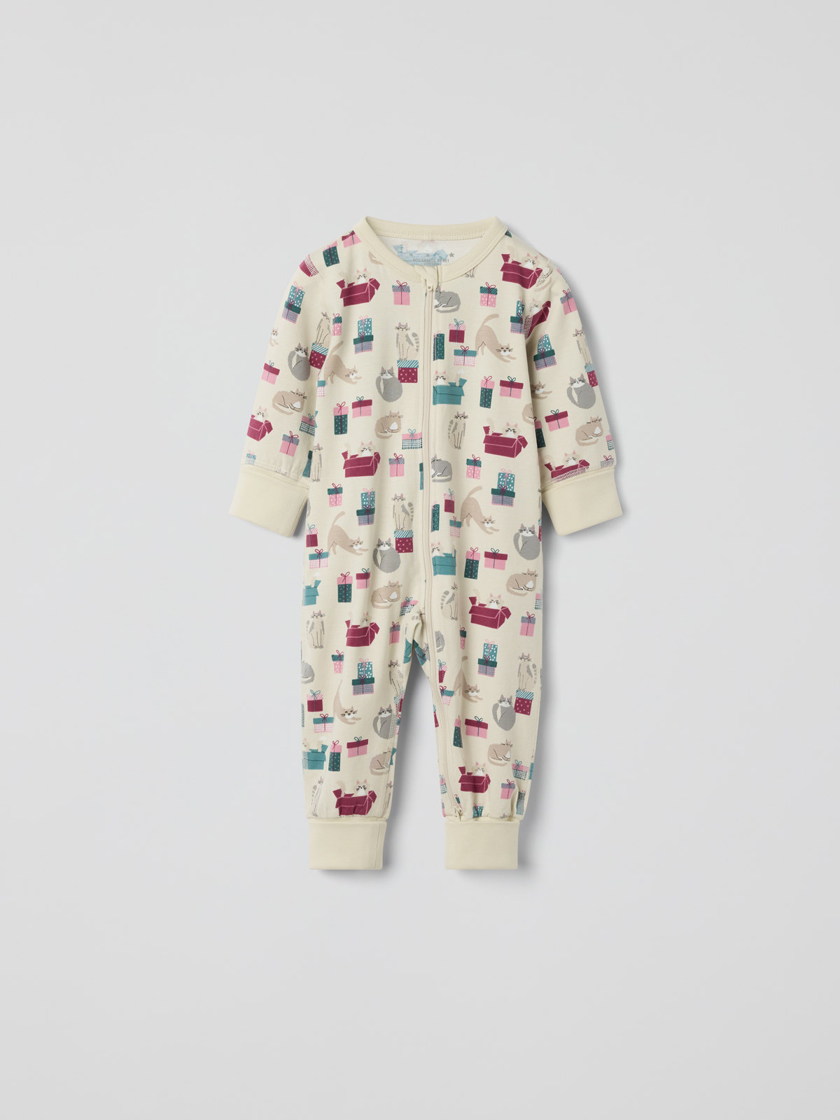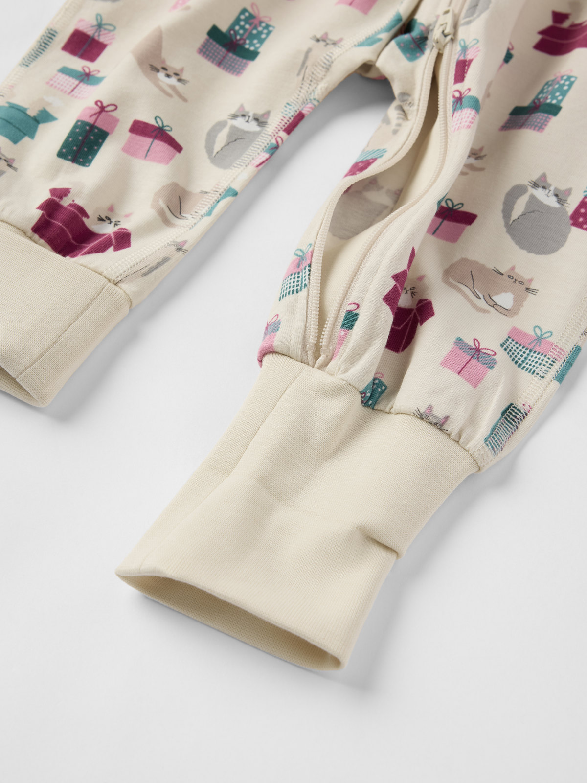 Schlafoverall aus weicher Bio-Baumwolle mit besonders weichen, flachen Nähten, die sanft zu empfindlicher Haut sind. Die extra langen Bündchen an Ärmel- und Beinabschlüssen können umgeschlagen werden, dadurch wächst das Kleidungsstück etwas mit deinem Kind mit. Der lange Reißverschluss reicht vom Hals bis zum Beinabschluss und kann von oben und unten geöffnet werden; das ist praktisch beim An- und Ausziehen.