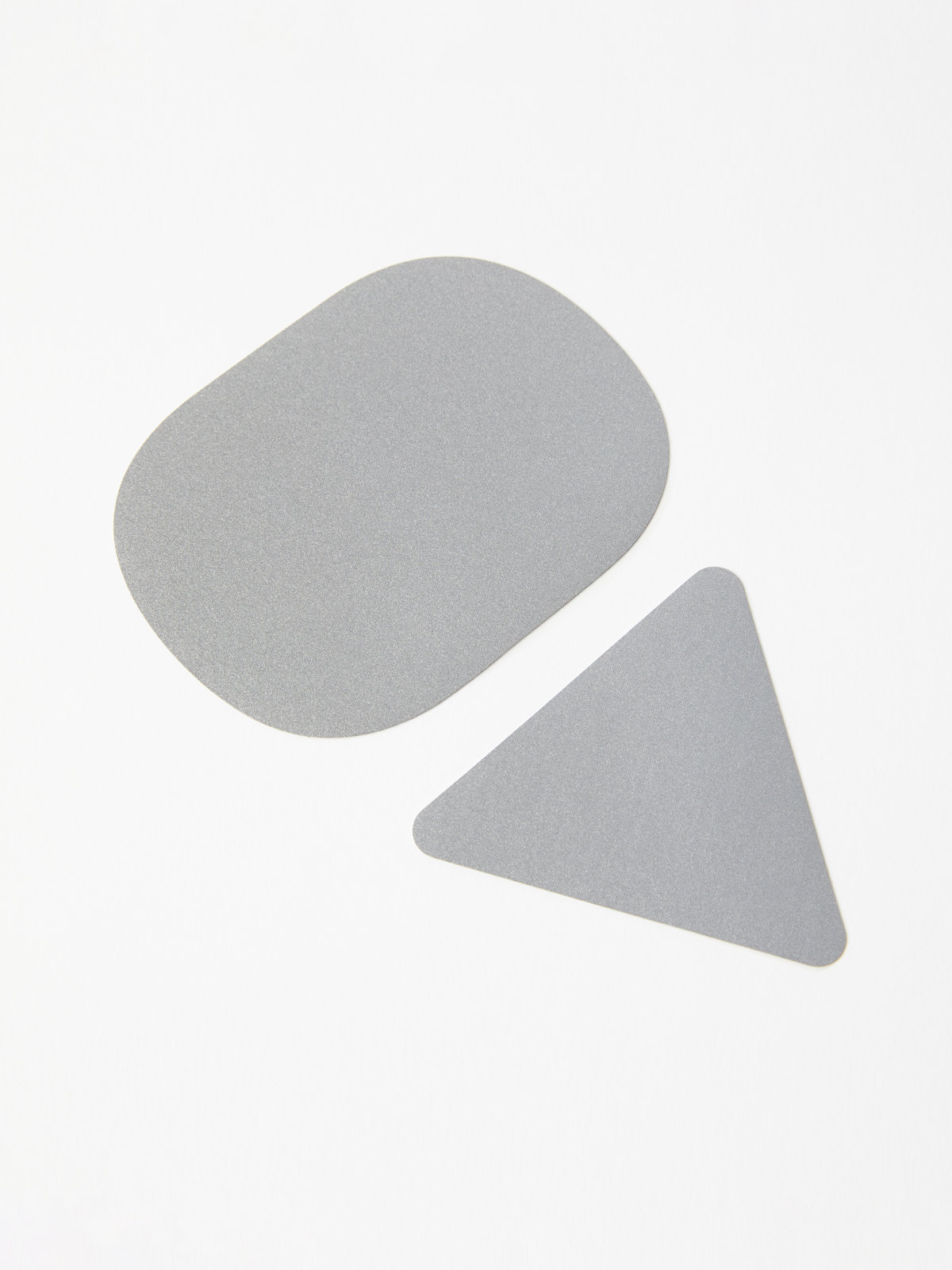 Neuheit! Reparatur-Set mit Reflektoren in lustigen Formen zum Aufbügeln auf die Outdoor-Bekleidung. Damit die Reflektoren gut halten, solltest du auf Folgendes achten: Das Kleidungsstück muss sauber sein, wenn der Reflektor aufgebracht wird. Den Reflektor mit kreisförmigen Bewegungen aufbügeln. Nachdem der Reflektor aufgebügelt wurde, solltest du ein paar Tage warten, bevor das Kleidungsstück das nächste Mal gewaschen wird. Weitere Anweisungen findest du auf der Verpackung.