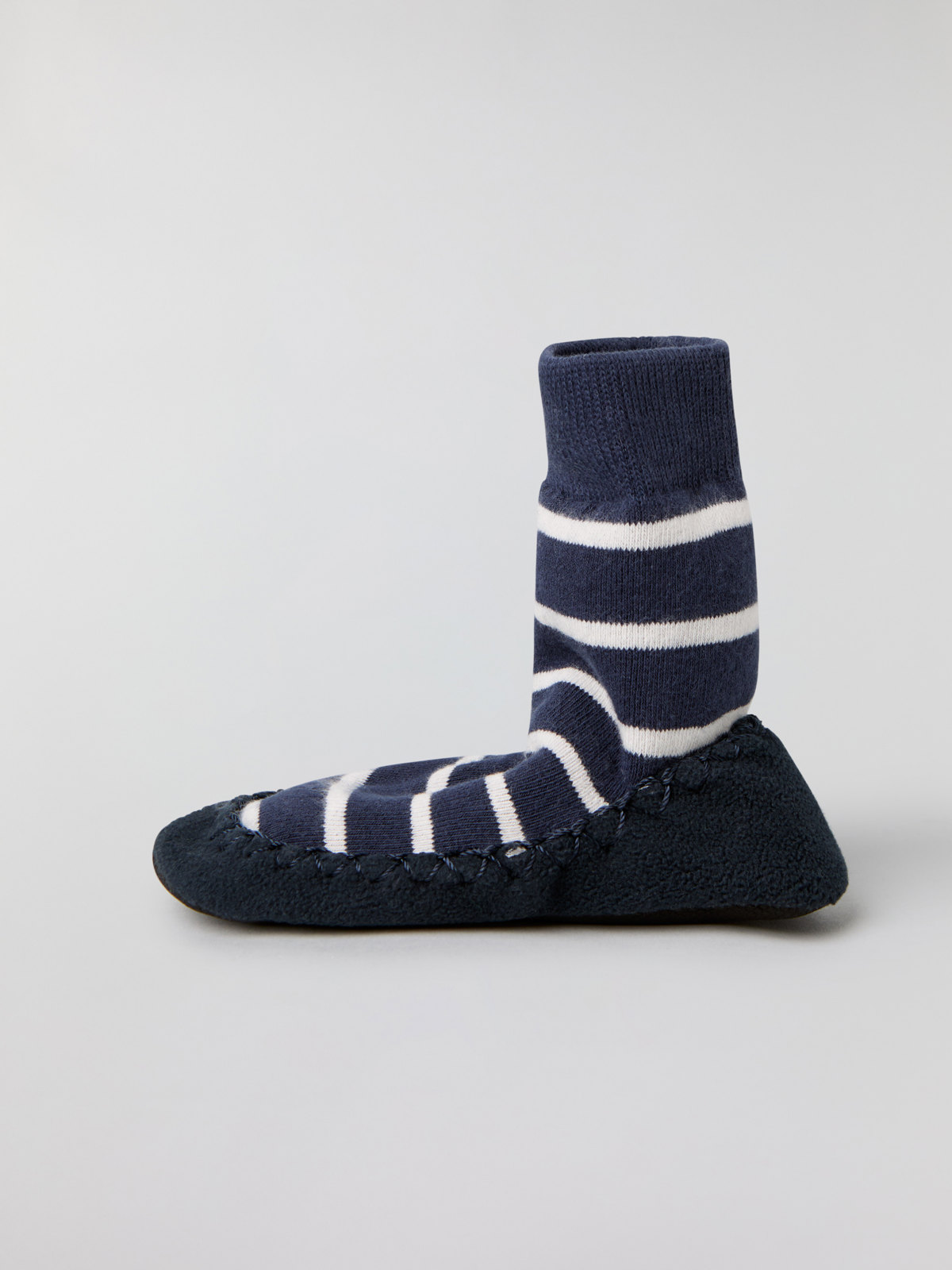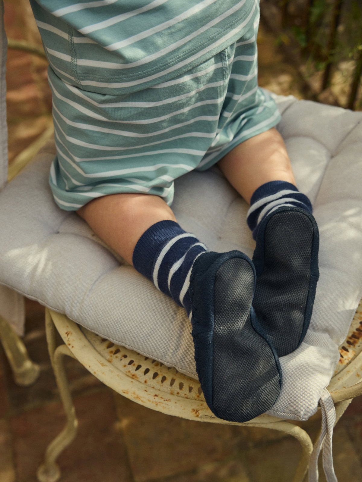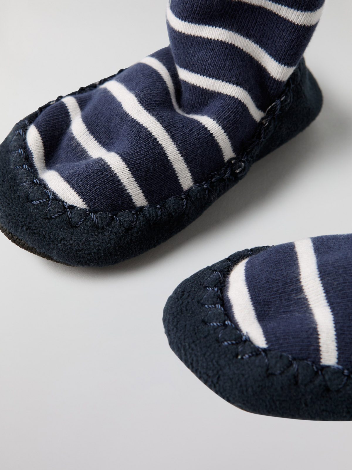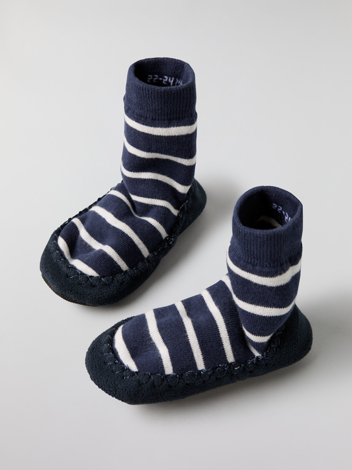 Die Mokassins haben eine Sohle aus smartem Shellmaterial mit einer besonders griffigen Oberfläche und weichem Fleecerand. Das Obermaterial aus gestricktem Trikot sorgt für eine bequeme Passform und erleichtert das An- und Ausziehen.