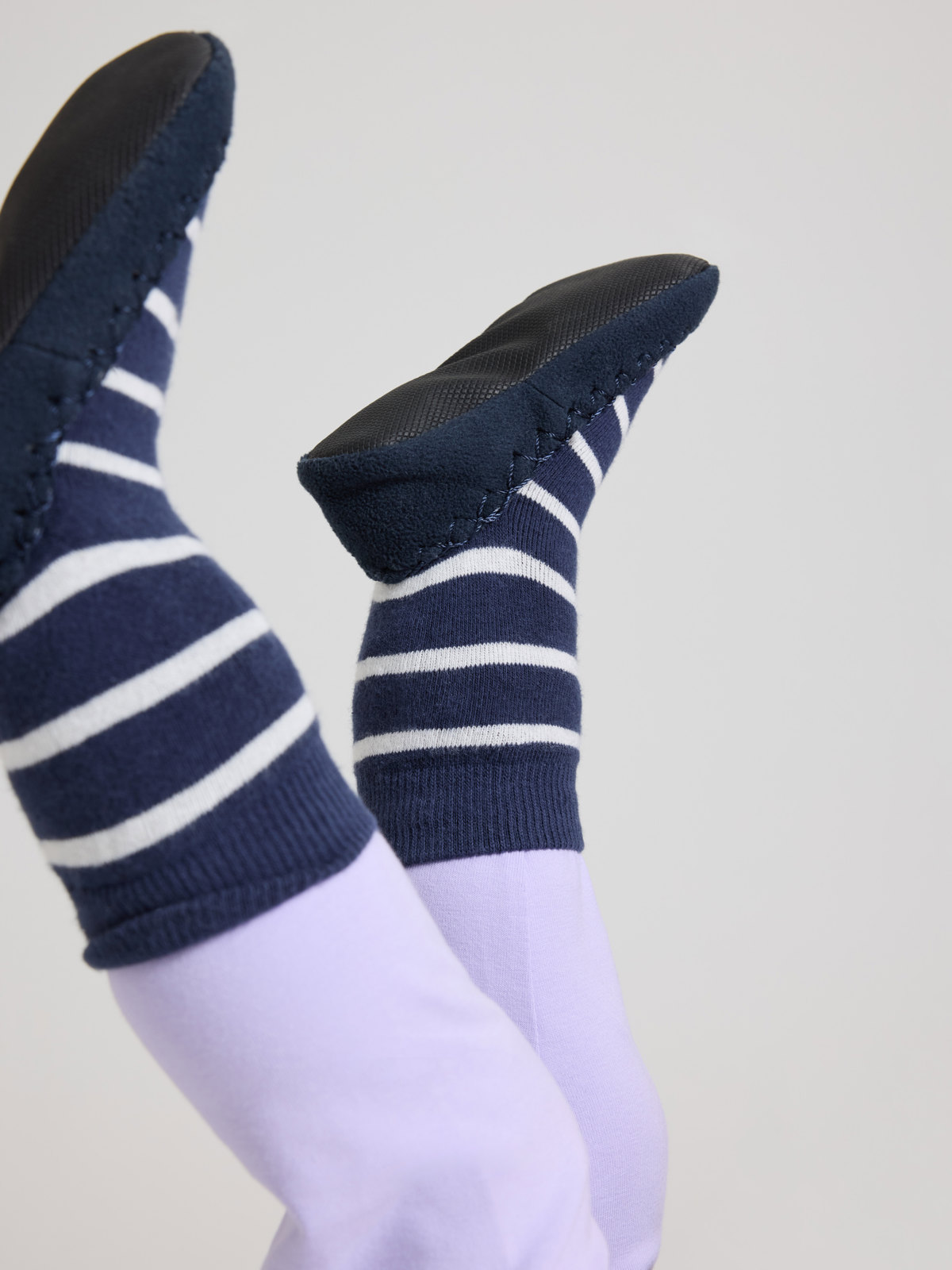 Das Rippenbündchen am Schaft sorgt dafür, dass die Hausschuhe nicht verrutschen.