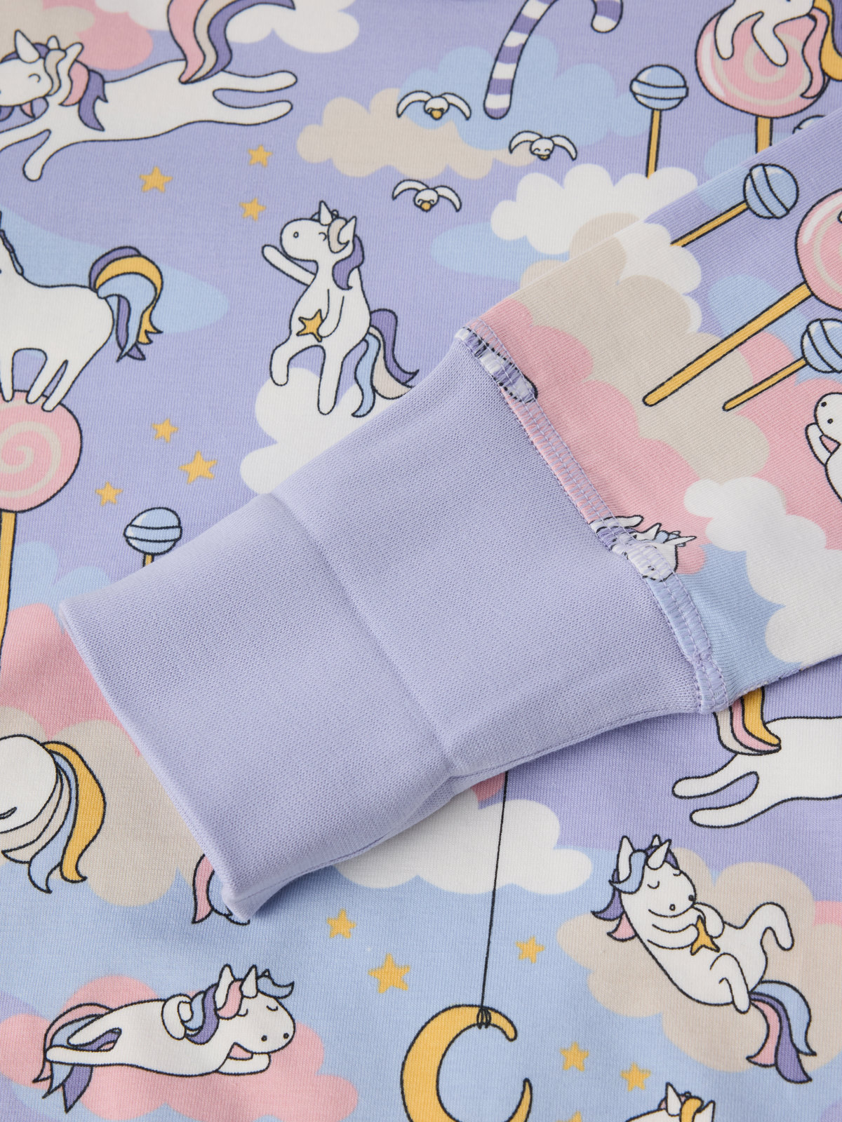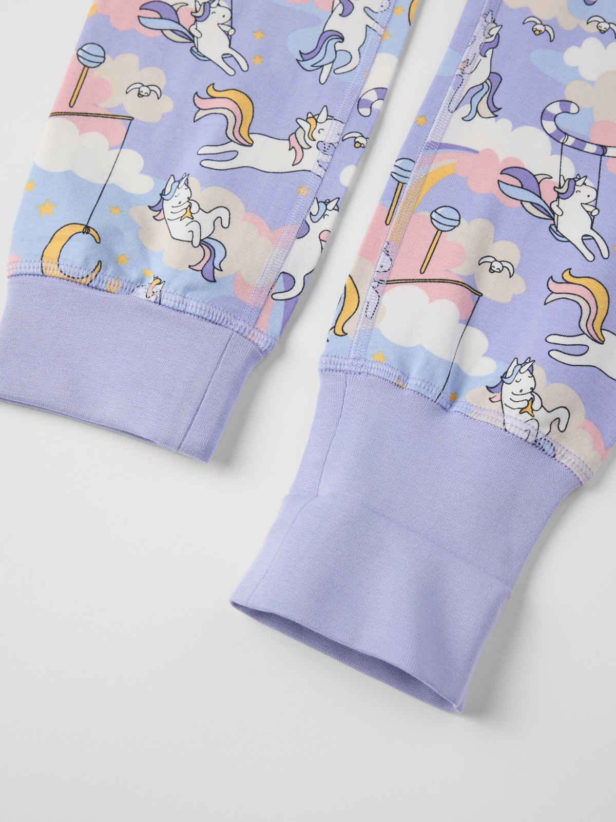 Zweiteiliger Schlafanzug aus weicher Bio-Baumwolle. Das Oberteil hat extra lange Ärmelbündchen zum Umschlagen. Die Hose mit elastischem Bund hat extra lange Bündchen an den Beinabschlüssen.