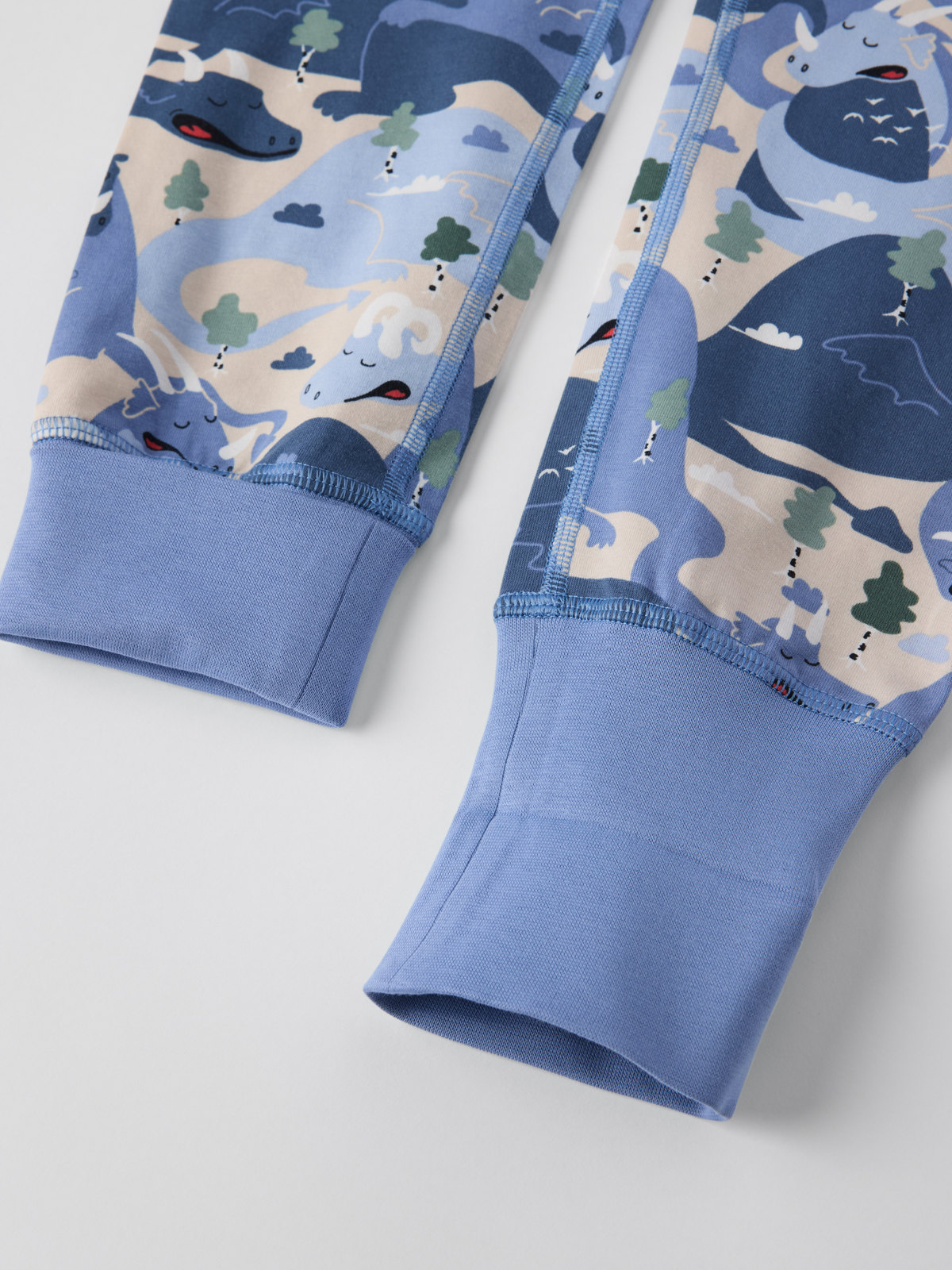 Zweiteiliger Schlafanzug aus weicher Bio-Baumwolle. Das Oberteil hat extra lange Ärmelbündchen zum Umschlagen. Die Hose mit elastischem Bund hat extra lange Bündchen an den Beinabschlüssen.