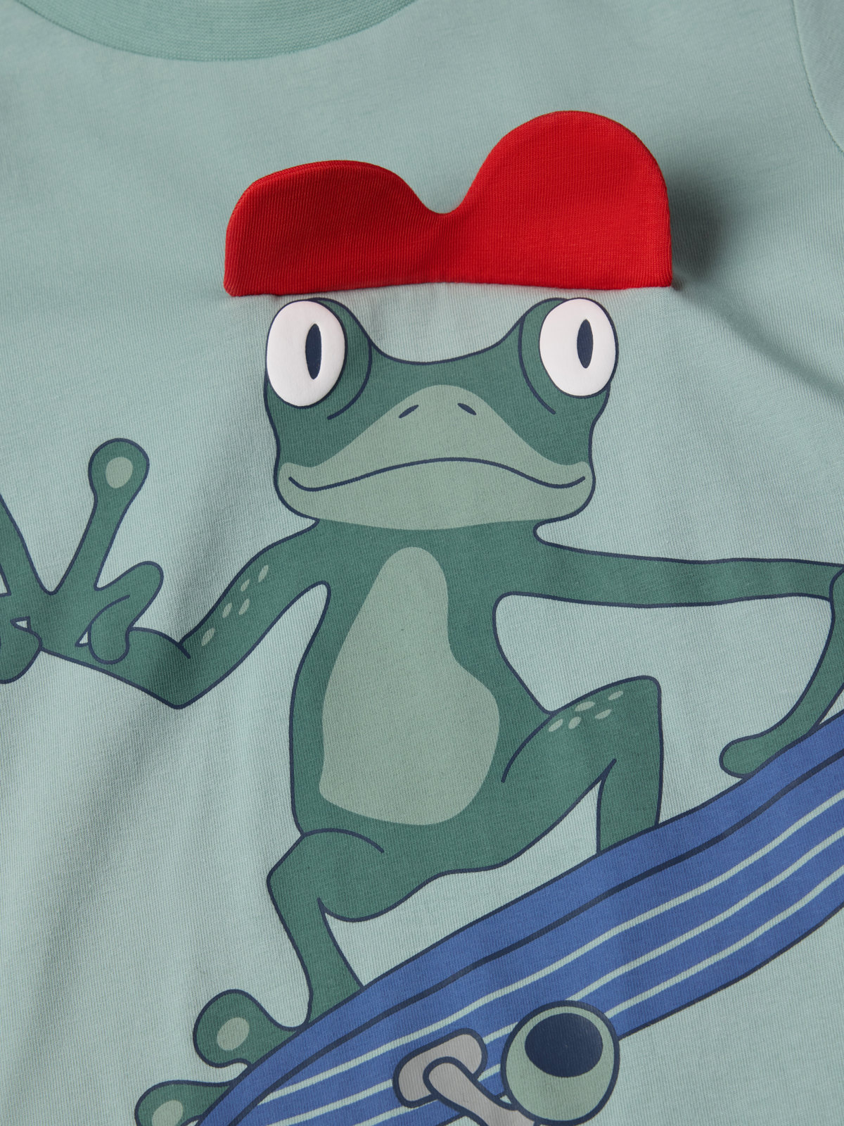 T-Shirt aus 100 % Bio-Baumwolle mit verspieltem Froschprint auf dem Vorderteil. Passt toll zu jedem Anlass! Das T-Shirt ist in mehreren Farben und unterschiedlichen Prints erhältlich, die sich mit der gesamten Kollektion kombinieren lassen. Such dir dein Lieblingsteil aus!