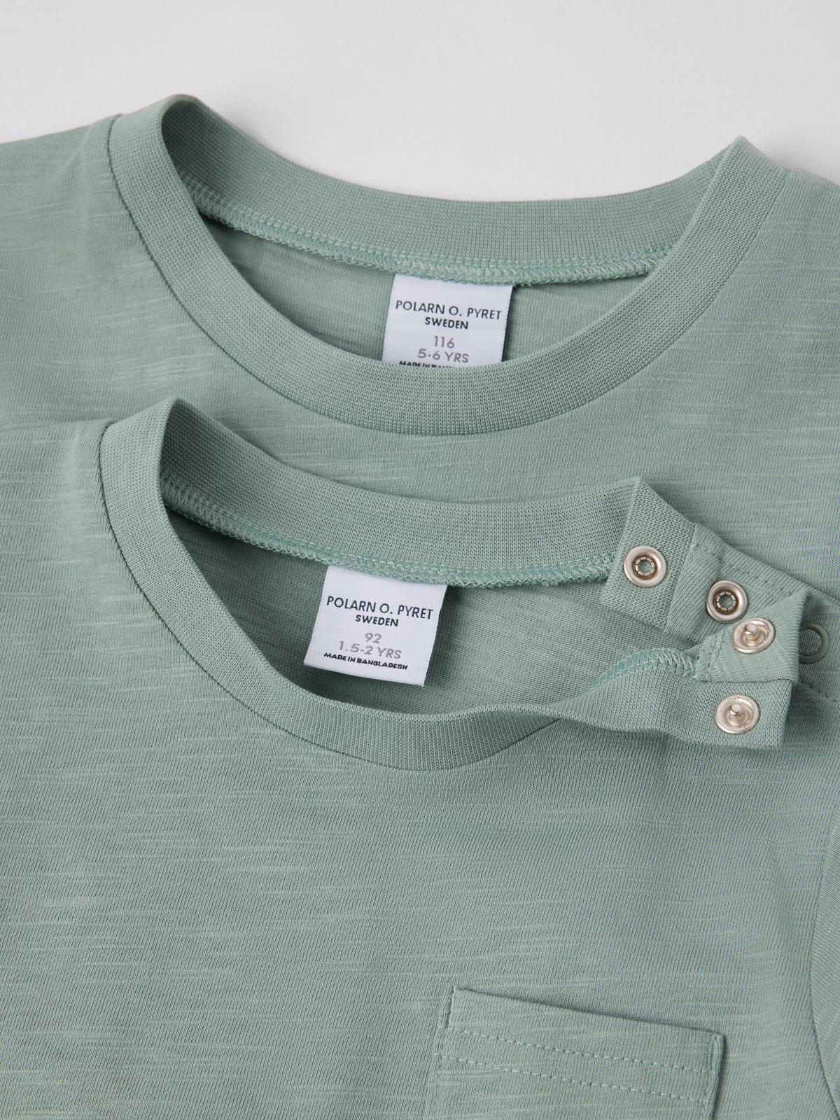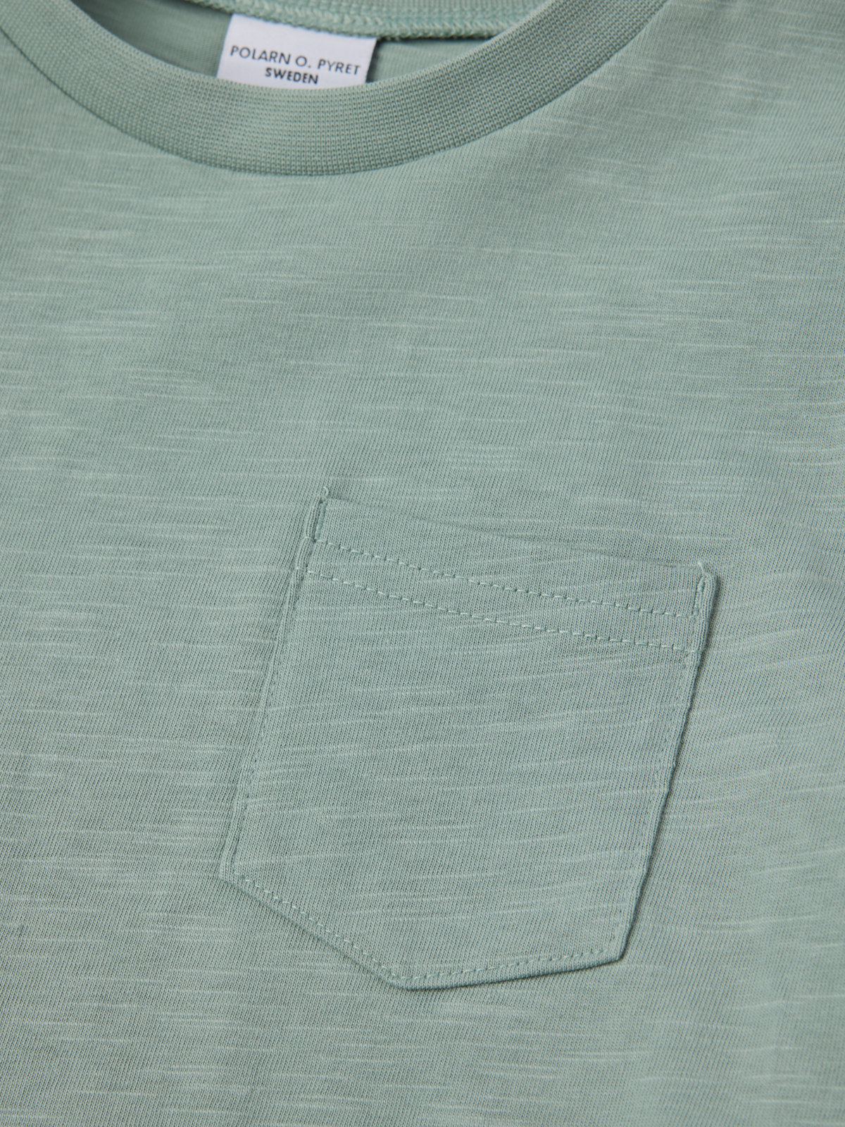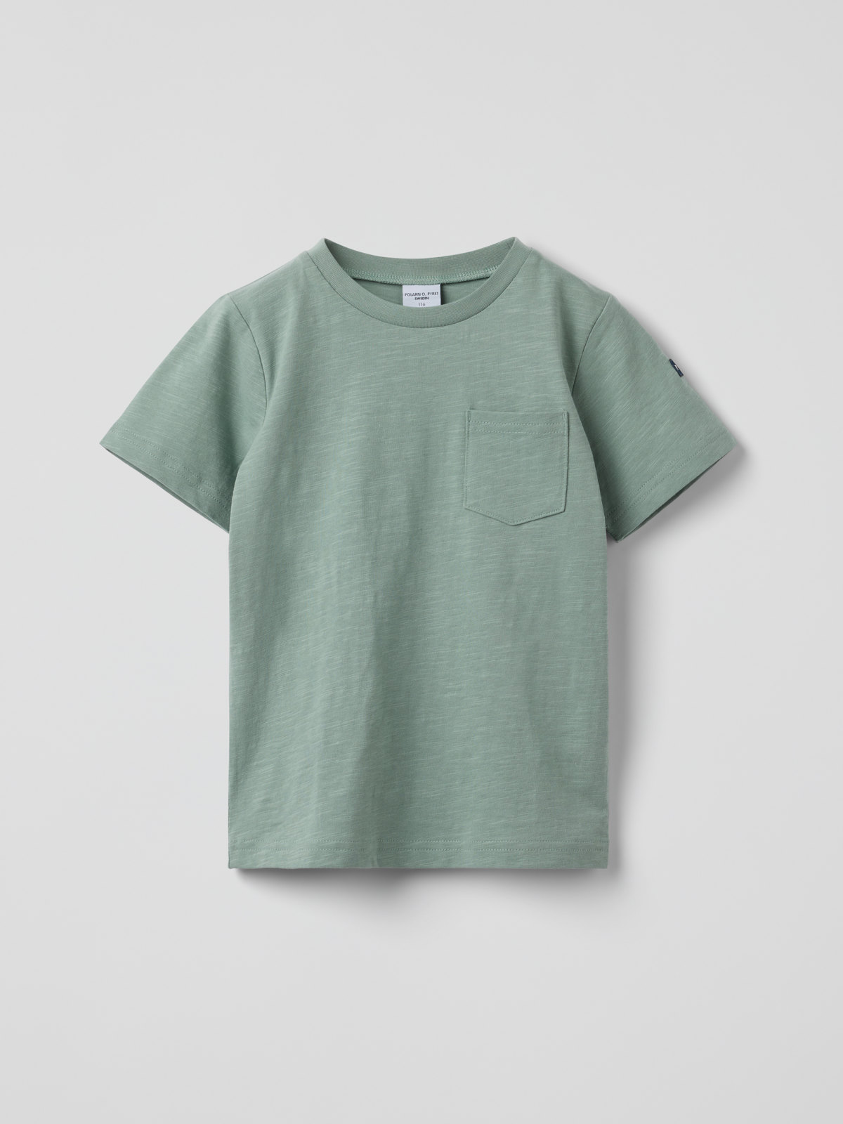 Einfarbiges T-Shirt aus 100 % Bio-Baumwolle. Perfekt für viele Anlässe! Das T-Shirt hat eine kleine Brusttasche und ist in mehreren Farben erhältlich, die gut zur gesamten Kollektion passen.