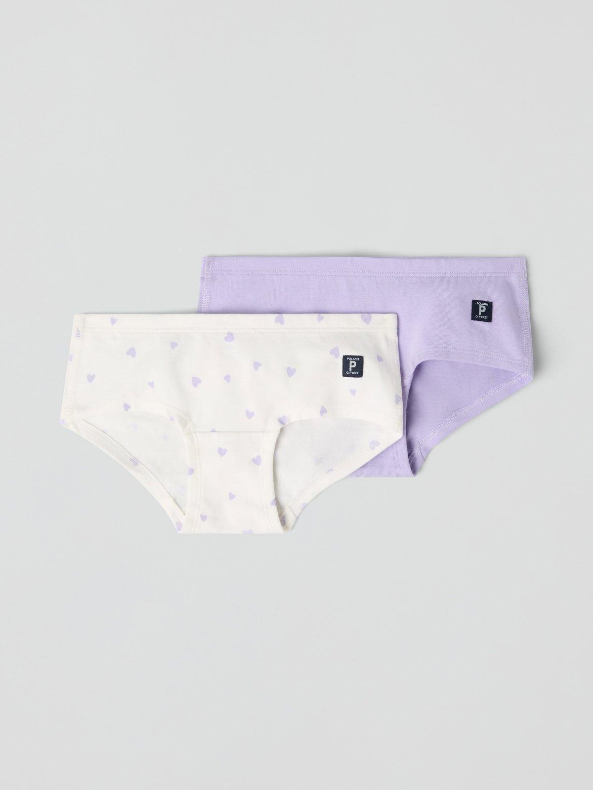 Hipster-Höschen aus Bio-Baumwolle, bei denen dank besonders weicher Nähte nichts scheuert. Die Höschen sind durchgehend mit Herzen bedruckt.