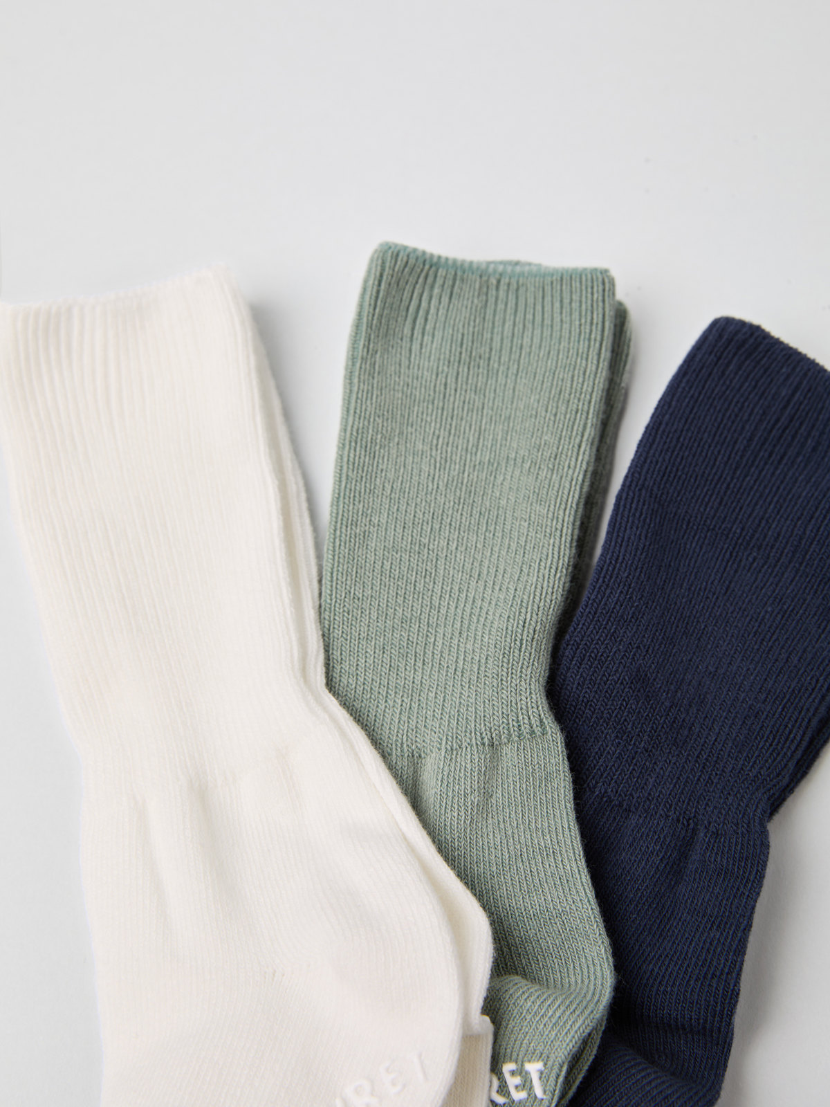 Hier kommen 3 Paar einfarbige Söckchen aus Bio-Baumwolle zum Auffüllen der Sockenschublade. Die Söckchen haben weiche Bündchen zum Umschlagen, die nicht scheuern und sie an Ort und Stelle halten. Jede Farbe passt perfekt zur gesamten Kollektion.