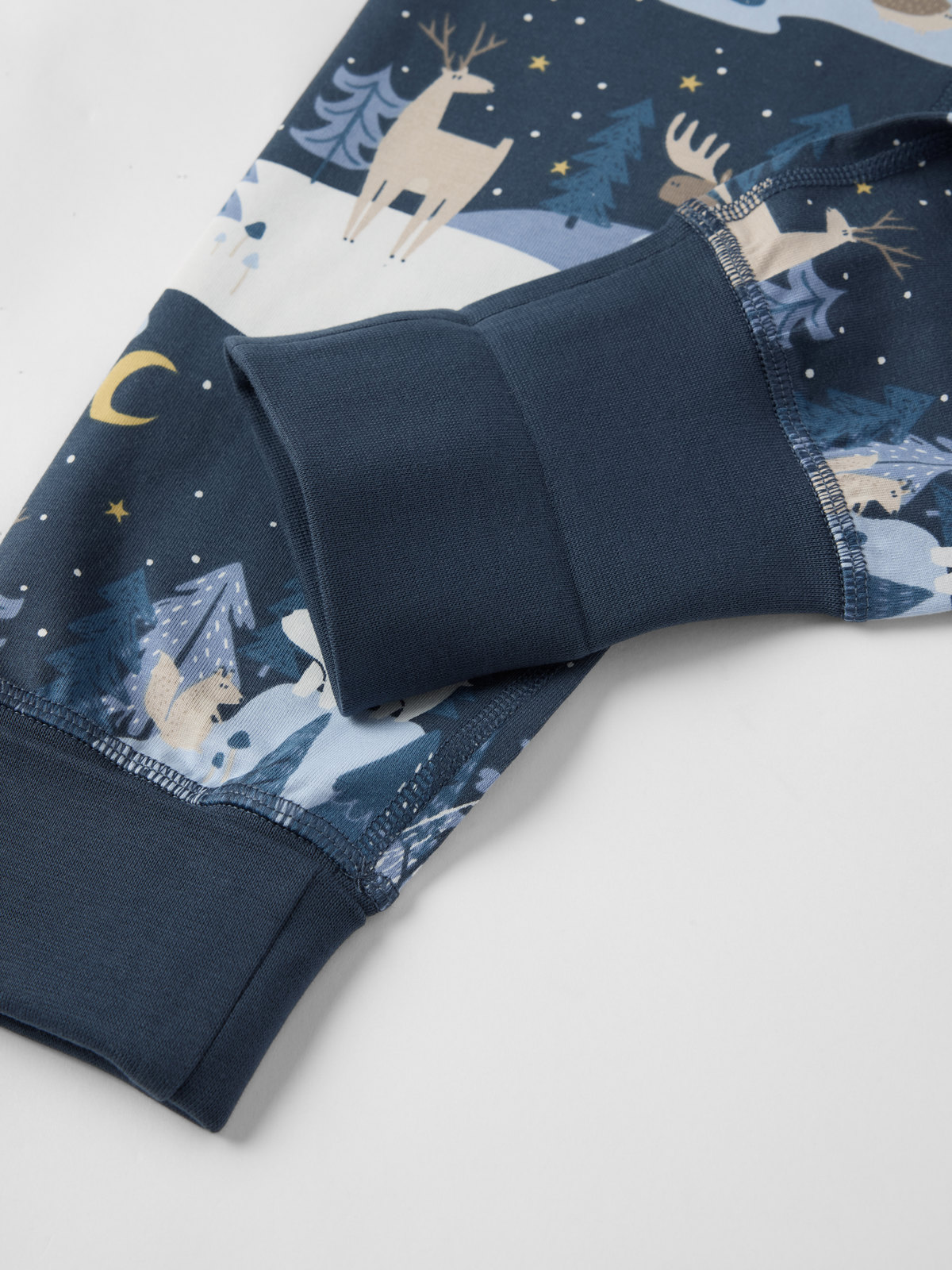 Zweiteiliger Schlafanzug aus weicher Bio-Baumwolle. Das Oberteil hat extra lange Ärmelbündchen zum Umschlagen. Die Hose mit elastischem Bund hat extra lange Bündchen an den Beinabschlüssen.