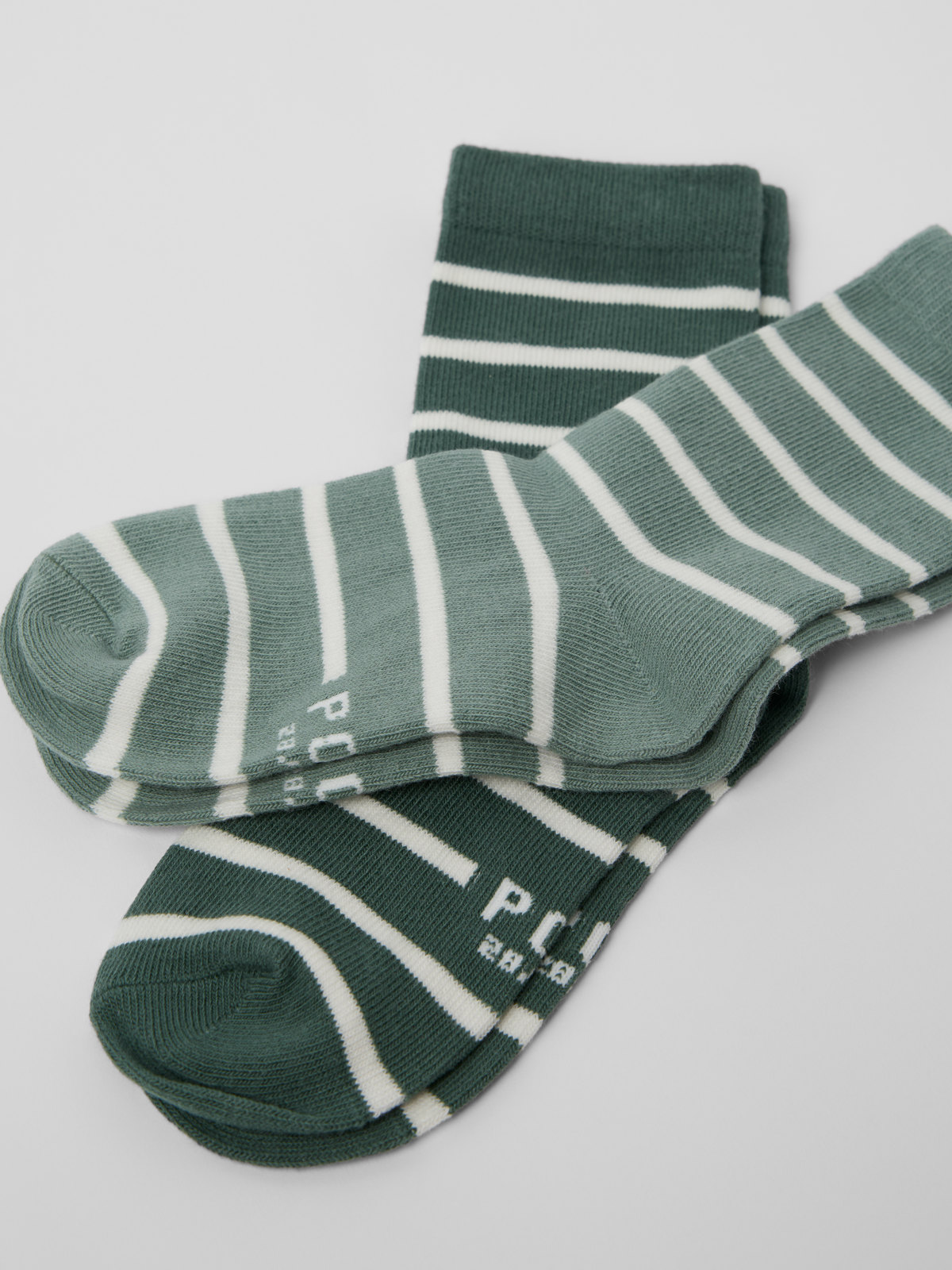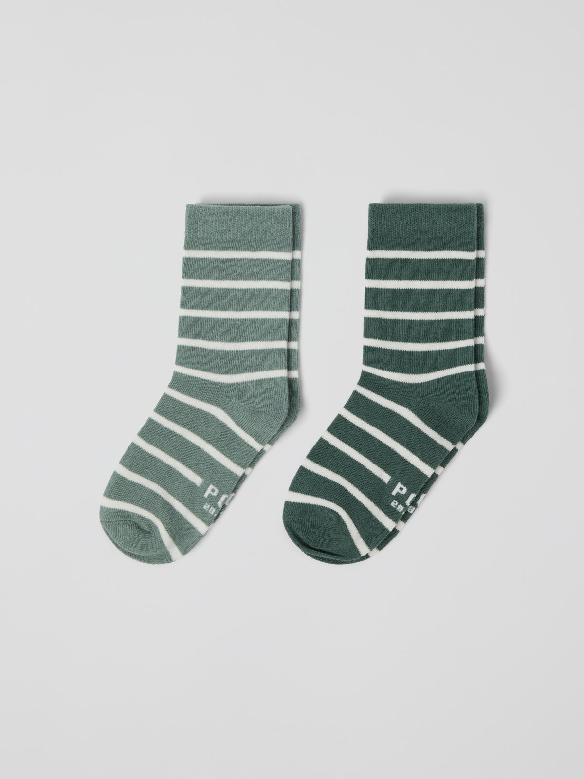Söckchen mit unseren klassischen Streifen aus weicher Bio-Baumwolle im 2er-Pack. Die Größe ist auf der Innenseite des Schaftes angegeben, dort ist auch Platz für den Namen des Kindes. Ordnung halten ist so einfach!