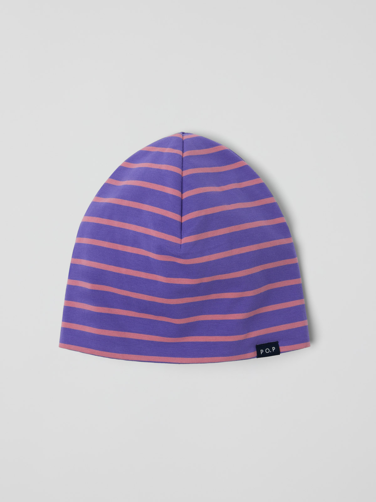 Gestreifte Mütze aus weicher Bio-Baumwolle. Die klassisch gestreifte Mütze hat ein mollig warmes Fleecefutter aus recyceltem Polyester – perfekt an den etwas kühleren Tagen.