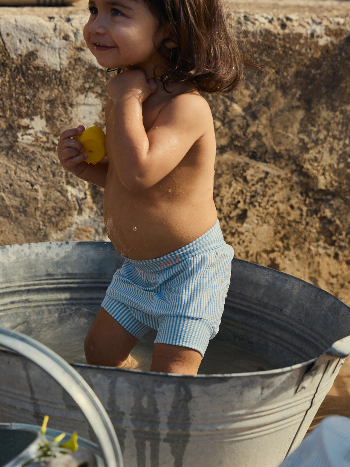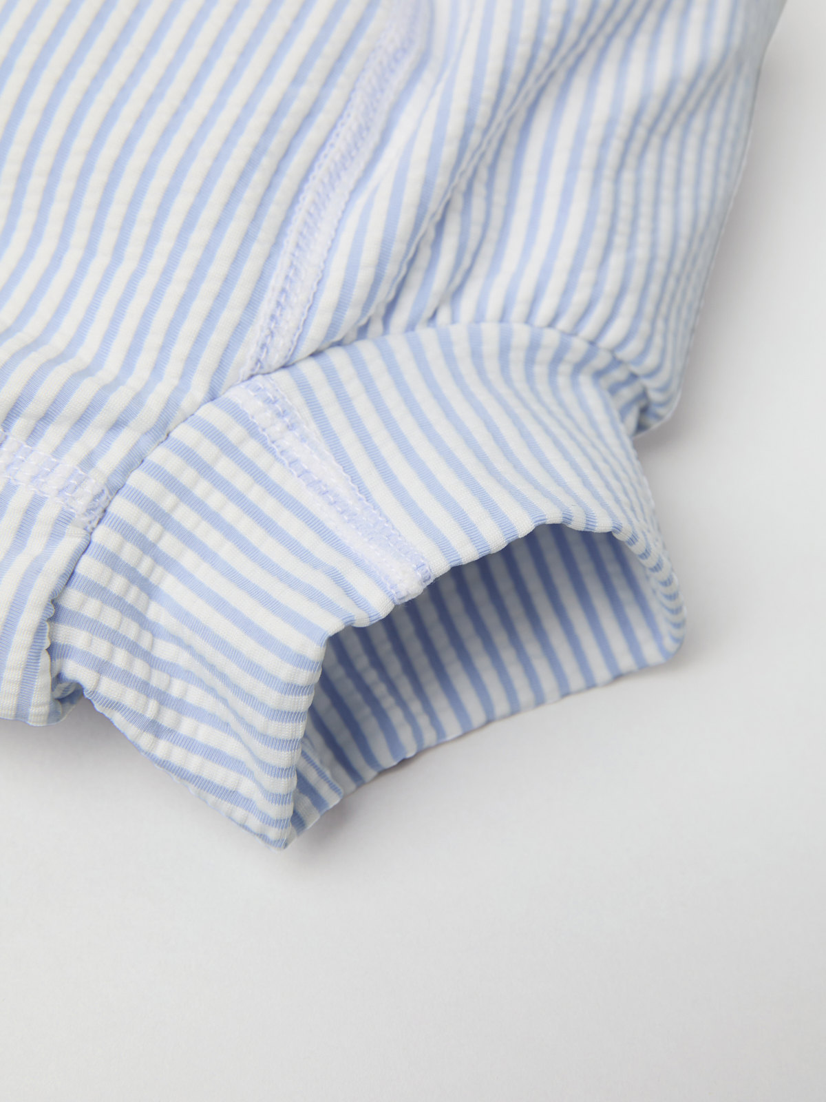 Gestreifte Schwimmwindel aus weichem und bequemem Material aus recyceltem Polyester – perfekt zum Babyschwimmen oder Badeausflug! Die Schwimmwindel hat einen breiten Gummizug in der Taille und an den Beinöffnungen für eine bequeme Passform und zum Auffangen kleiner Unfälle.