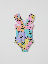 Geblümter Badeanzug aus weichem und bequemem Material aus recyceltem Polyester. Der Badeanzug ist vollständig gefüttert und hat breite Träger mit niedlichen Rüschen über den Schultern.