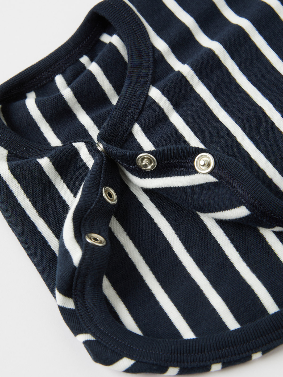 Gestreift body für Babys aus 100 % Bio-Baumwolle. Der Body ist mit besonders weichen Nähten genäht, die empfindliche Haut nicht reizen. Die Druckknöpfe entlang der Wickelöffnung erleichtern das An- und Ausziehen.