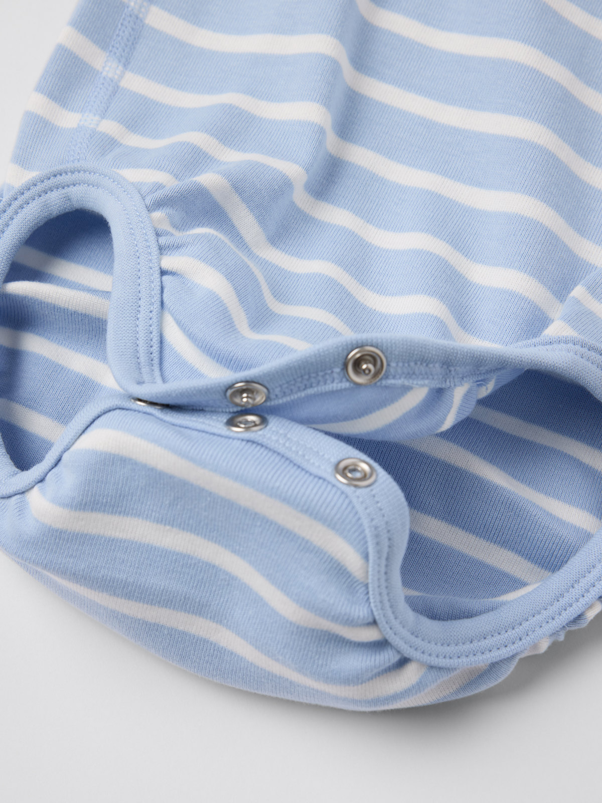 Tragefreundlicher, komfortabler Body aus 100 % Bio-Baumwolle für Babys. Ein perfektes Basic, das in keiner Kindergarderobe fehlen darf! Der Body mit unseren klassischen Streifen hat überlappende Schulterpartien, sodass er sich einfach über den Kopf des Babys ziehen lässt. Die Ärmelabschlüsse sind mit weichen Rippenbündchen besetzt.