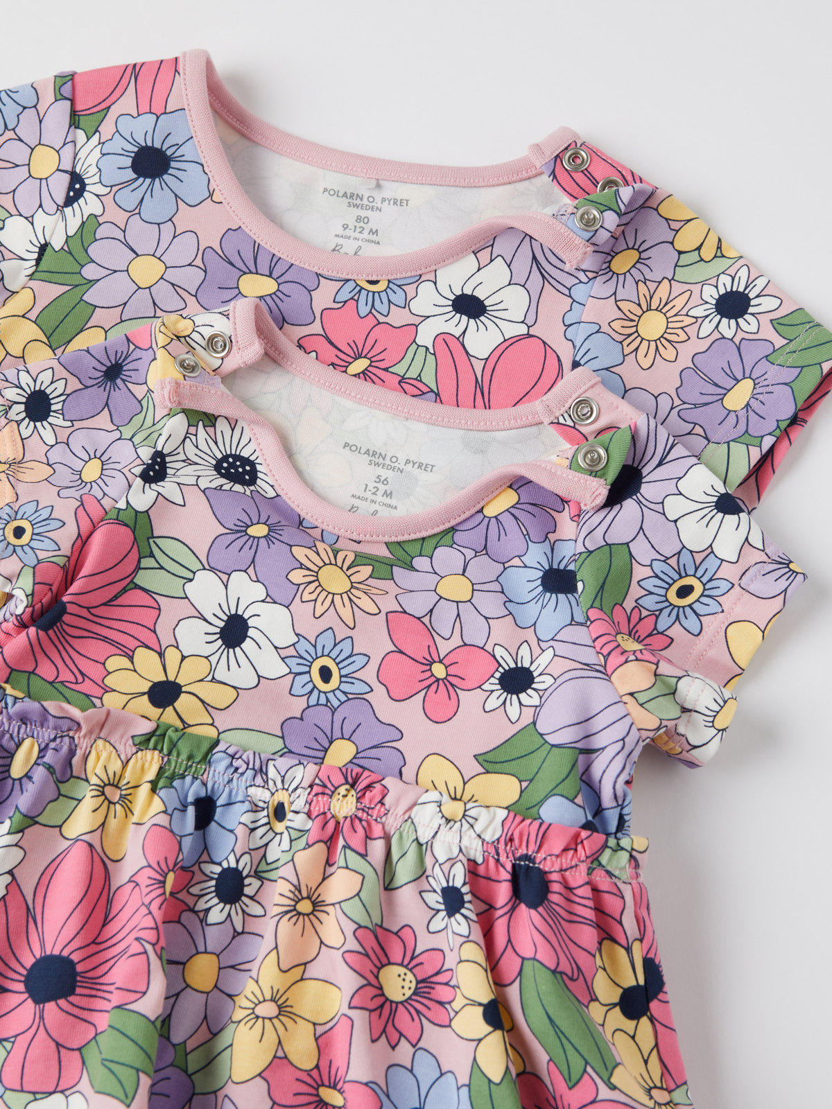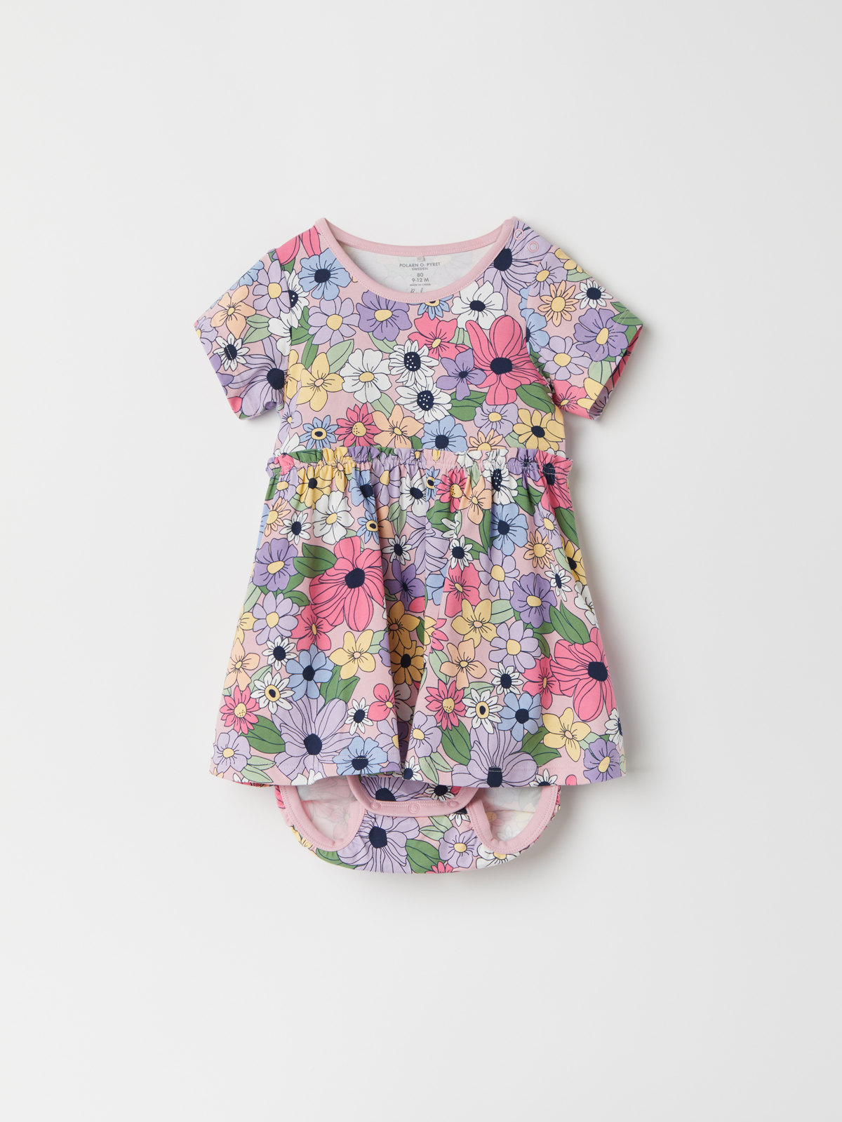 Der durchgehend mit Blumen gemusterte Body hat verdeckte Druckknöpfe an einer Schulter und im Schritt, um das An- und Ausziehen zu erleichtern.