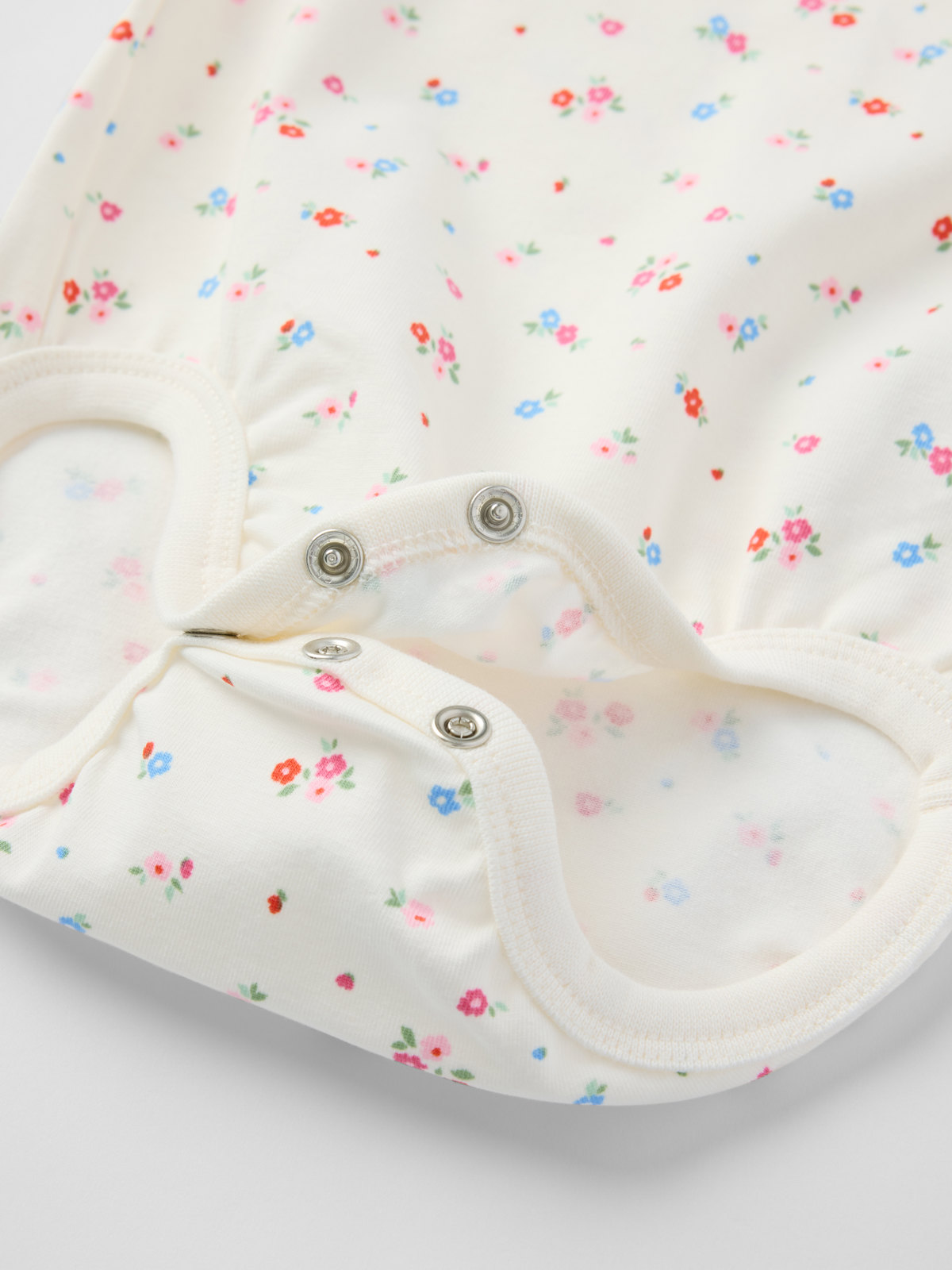 Druckknöpfe an einer Schulter und im Schritt erleichtern das Umziehen. Größe 50–62 hat Druckknöpfe an beiden Schultern. Ideal für Geschwister-Looks!