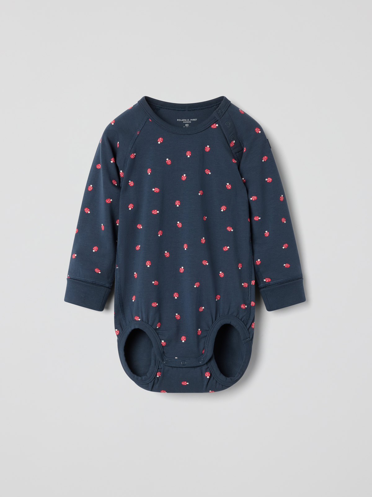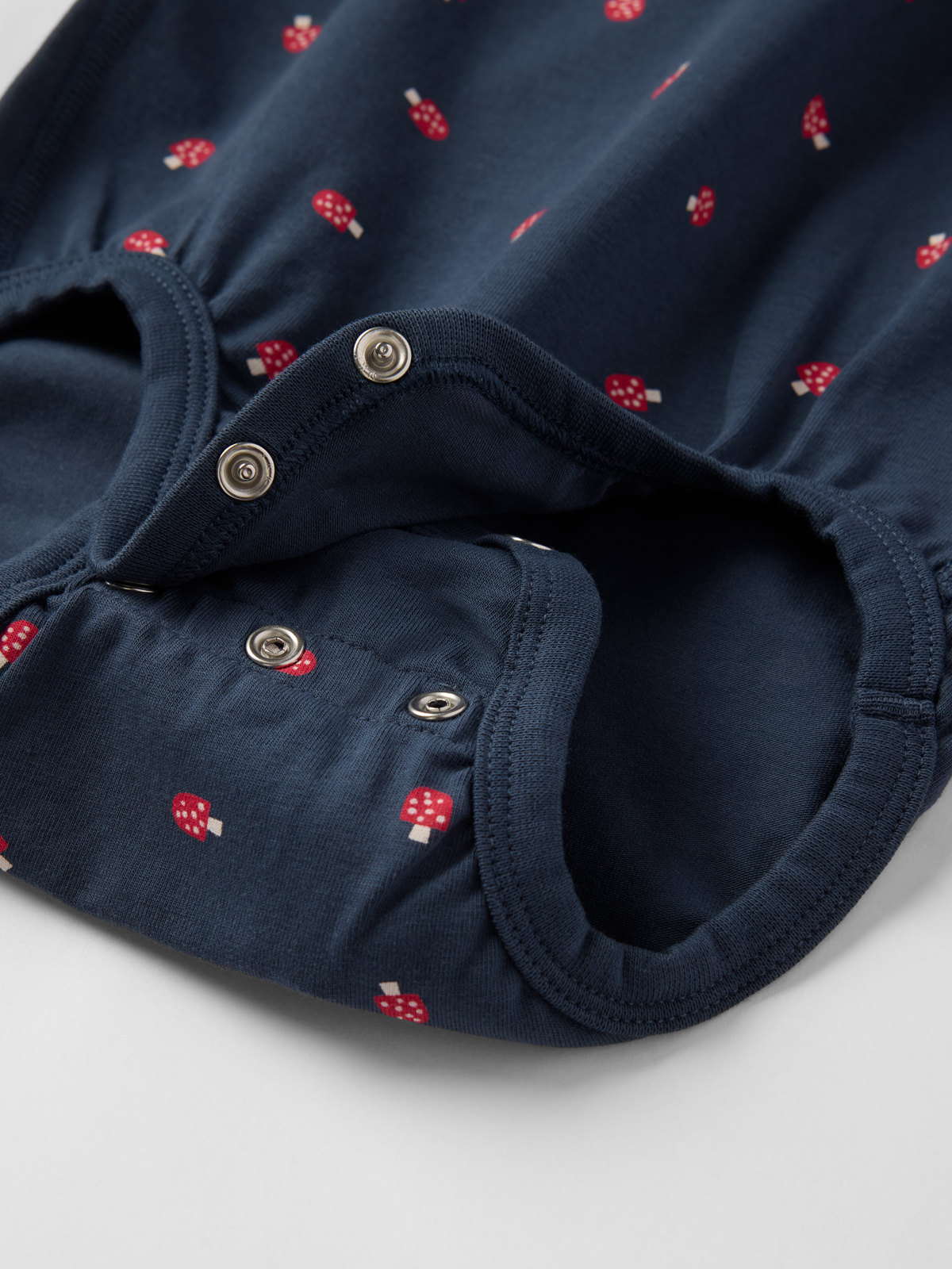 Druckknöpfe auf einer Schulter erleichtern das An- und Ausziehen.