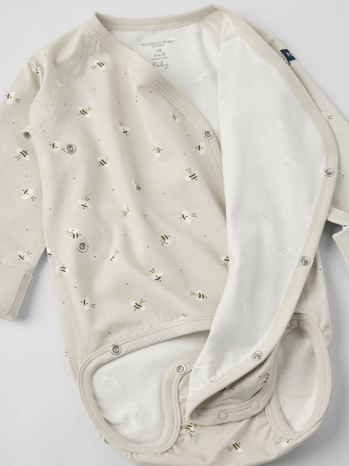 Die Druckknöpfe entlang der Wickelöffnung erleichtern das An- und Ausziehen.