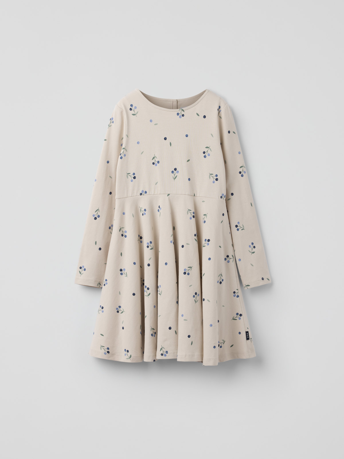 Ein Kleid, dass in keiner Kindergarderobe fehlen darf! Das Kleid aus weichem Bio-Baumwolltrikot hat ein besonders weites Rockteil, so dass es beim Drehen schön schwingt. Das Kleid wird im Rücken mit einer Knopfleiste geschlossen.