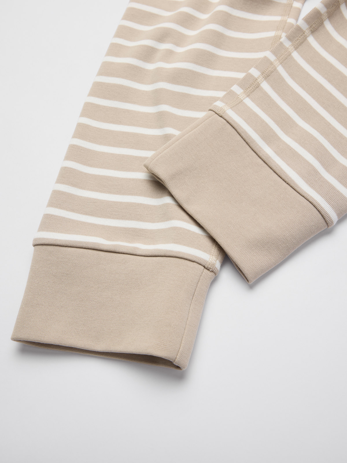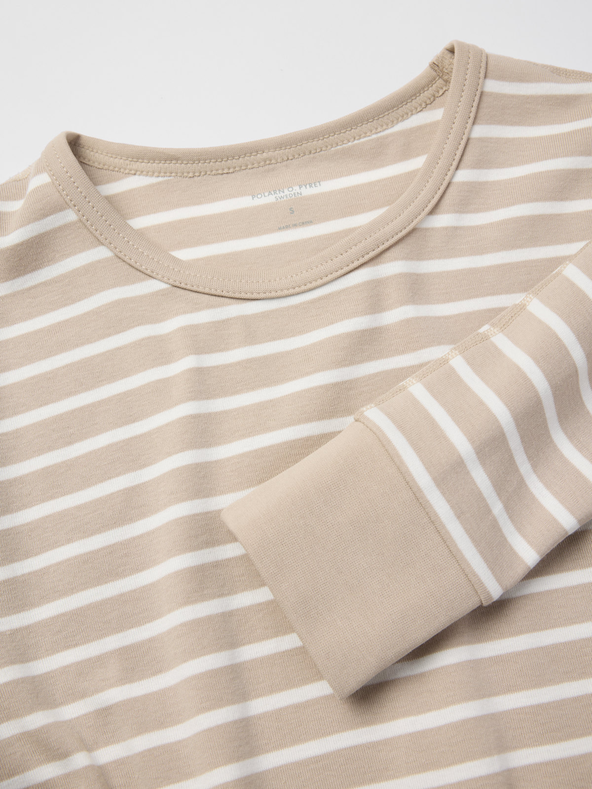 Set bestehend aus Shirt und Hose mit unseren klassischen Streifen in Erwachsenengrößen. Ausschnitt und Ärmelabschlüsse sind mit weichen Rippenbündchen besetzt. Die Hose mit elastischem Bund hat weiche Rippenbündchen an den Beinabschlüssen.