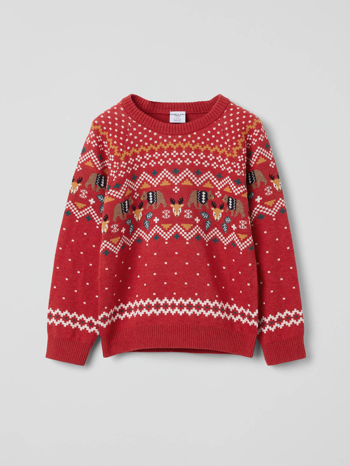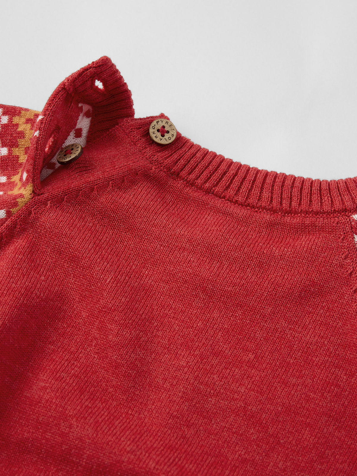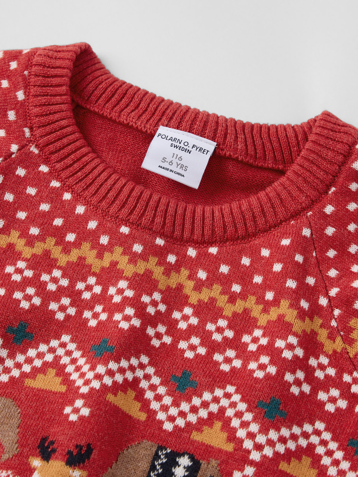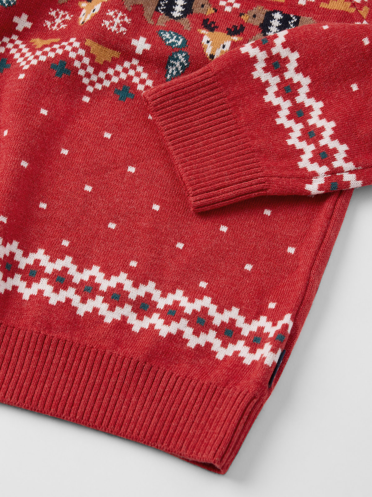 Dicker Pullover aus 100 % Bio-Baumwolle – richtig kuschelig und warm in der Kälte! Der Pullover hat ein schönes weihnachtliches Muster. Gerippte Bündchen am Hals, an den Ärmeln und am Saum sorgen für eine angenehme Passform.