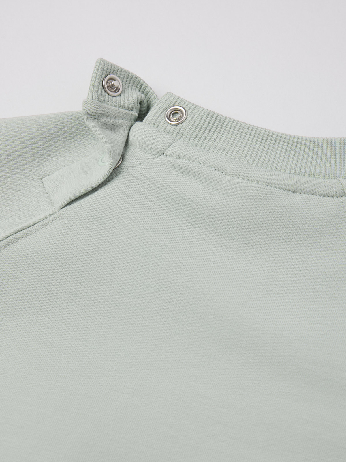 Shirt aus 100 % Bio-Baumwolle in weicher Sweatshirtqualität für Babys. Das passt einfach immer! Ausschnitt und Ärmelabschlüsse sind mit weichen Rippenbündchen besetzt. Druckknöpfe an einer Schulter erleichtern das An- und Ausziehen.