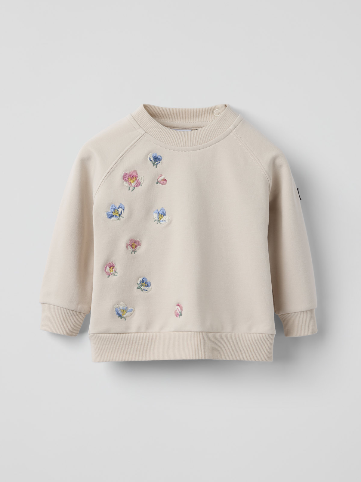 Shirt aus 100 % Bio-Baumwolle in weicher Sweatshirtqualität für Babys. Das passt einfach immer! Ausschnitt und Ärmelabschlüsse sind mit weichen Rippenbündchen besetzt. Druckknöpfe an einer Schulter erleichtern das An- und Ausziehen.