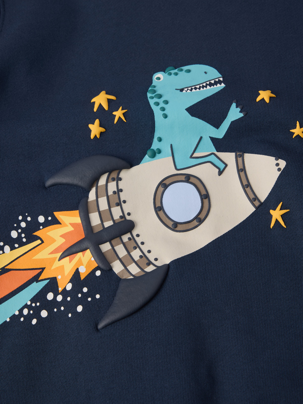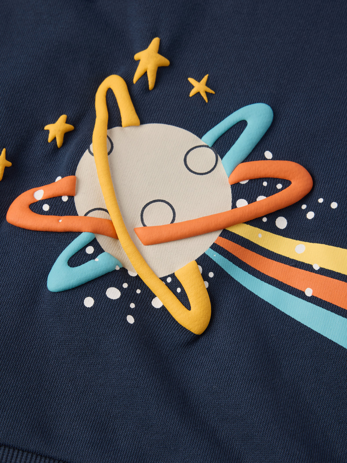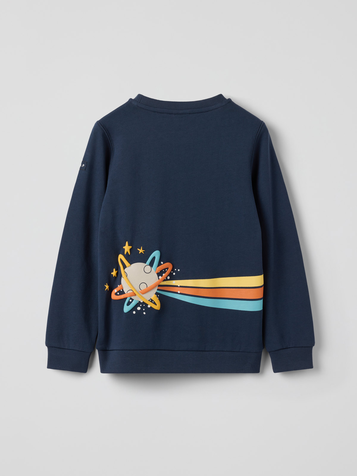 Shirt aus 100 % Bio-Baumwolle in weicher Sweatshirtqualität. Es passt zu jedem Anlass! Das Shirt hat einen großen Weltraumdruck auf der Vorderseite, der sich über den Rücken fortsetzt. Ausschnitt und Ärmelabschlüsse sind mit weichen Rippenbündchen besetzt.