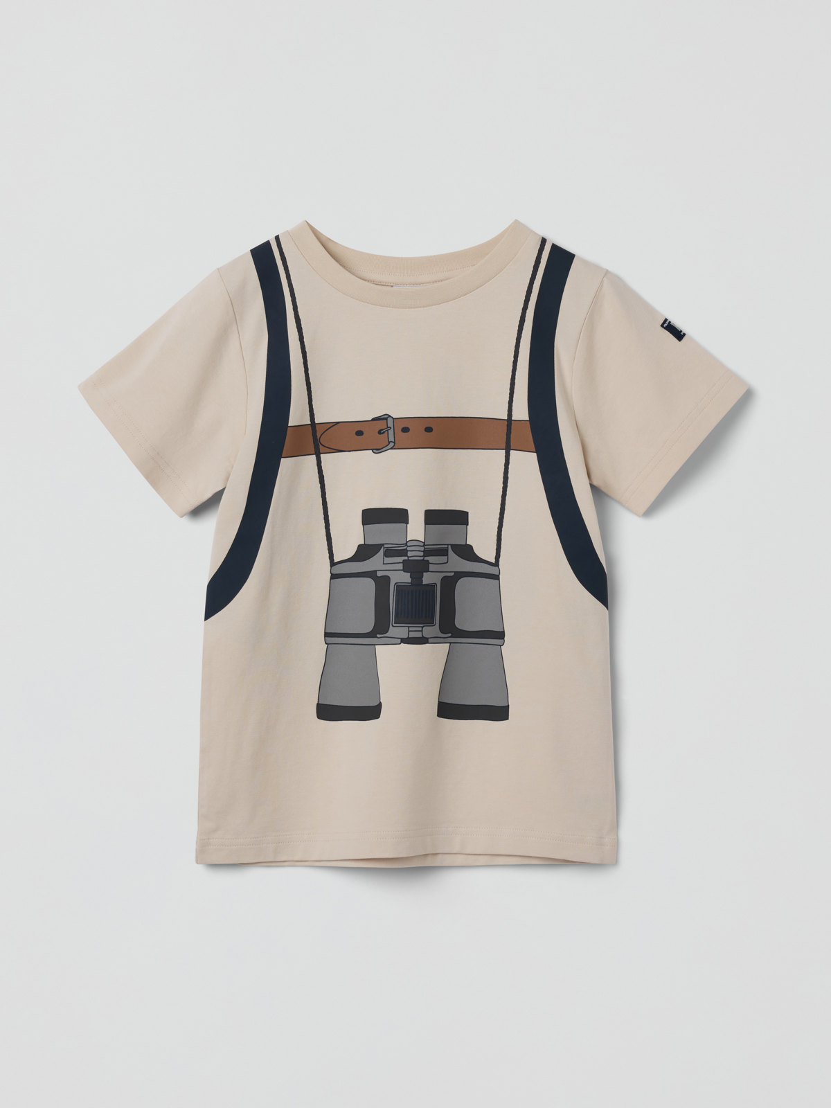 T-Shirt aus 100 % Bio-Baumwolle mit verspieltem Fernglas- und Rucksack-Print auf Brust und Rücken. Toll für jeden Anlass!