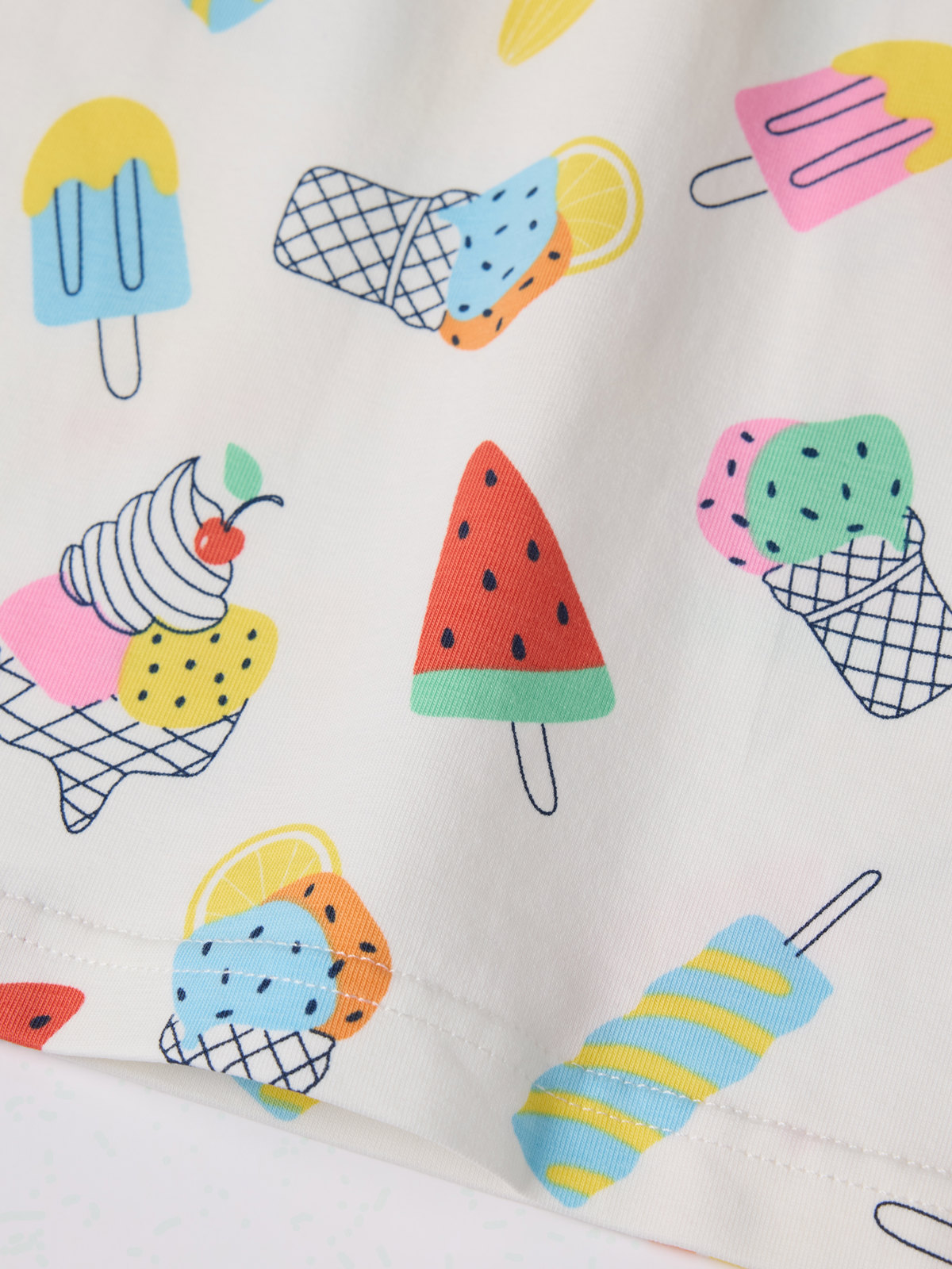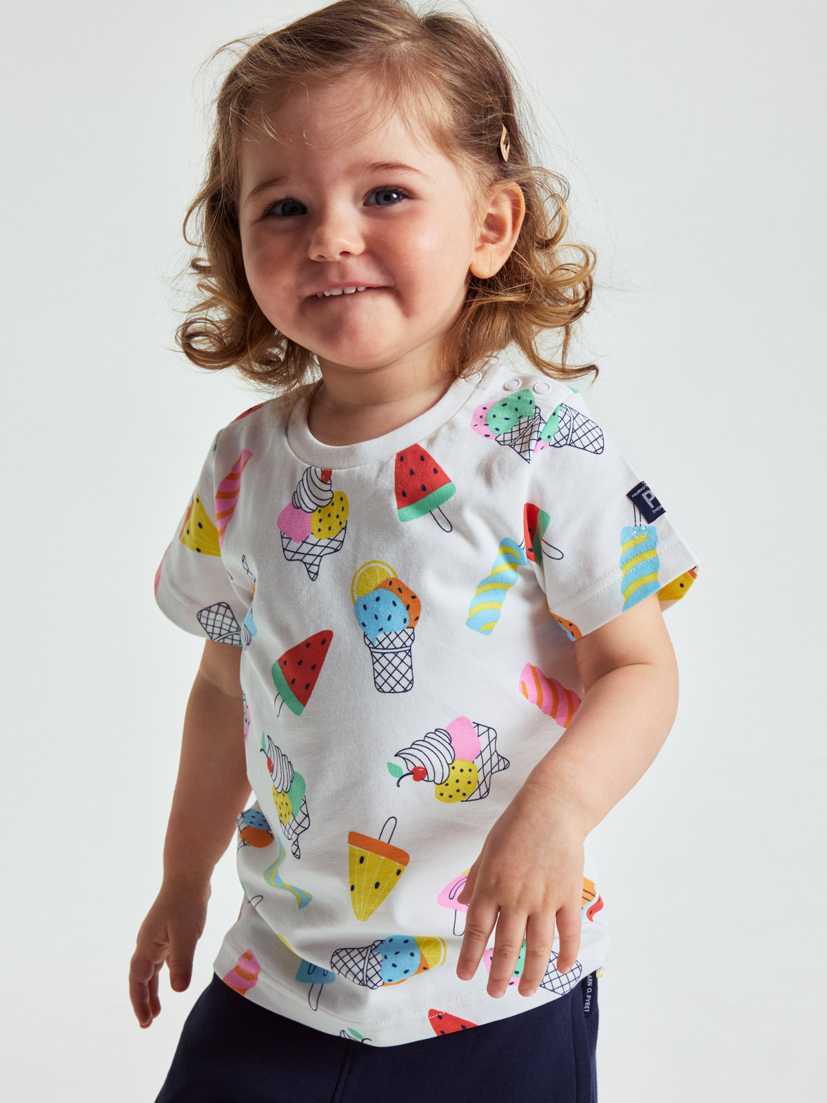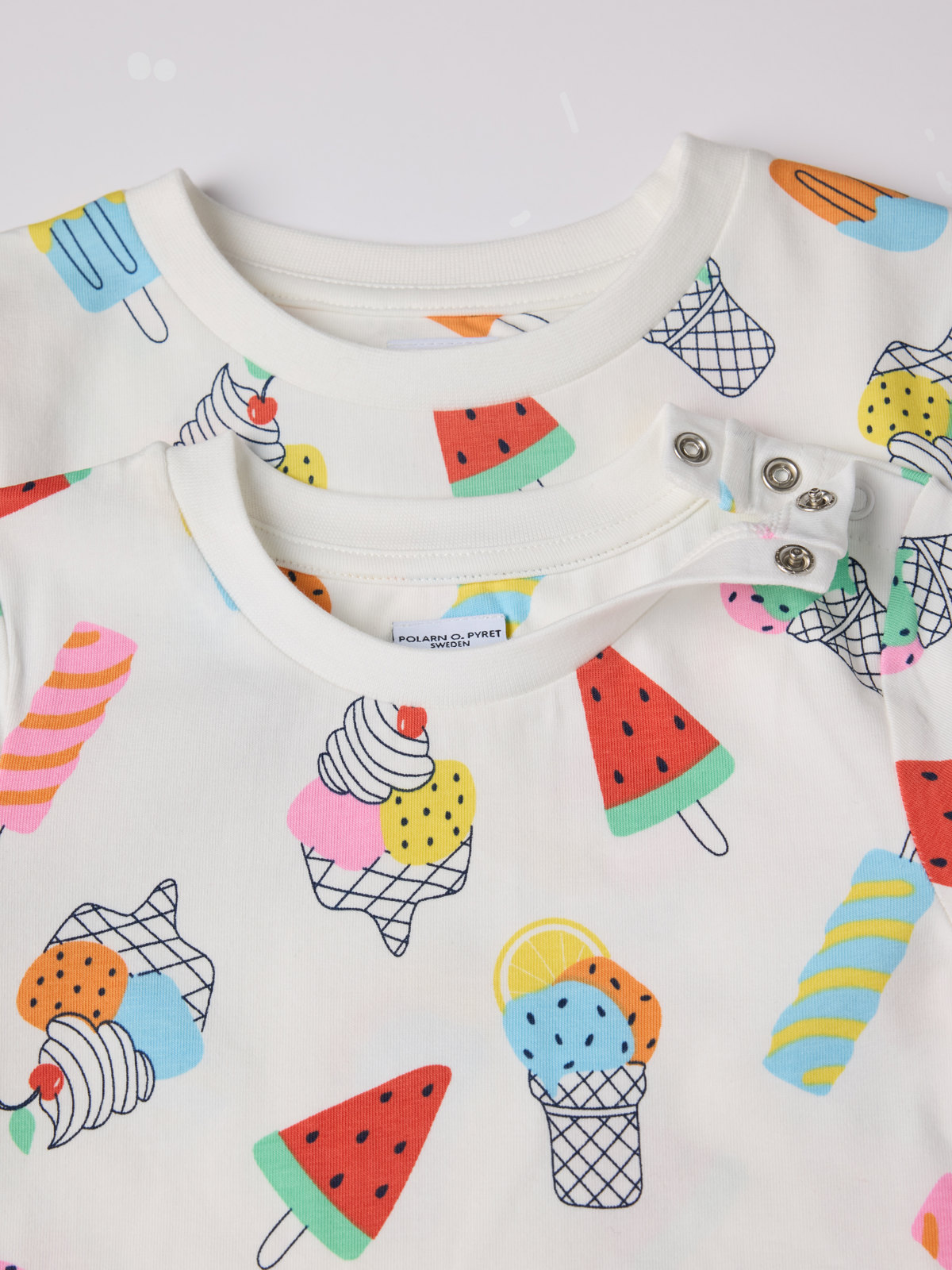 Das T-Shirt aus weicher Bio-Baumwolle ist durchgehend mit einem Eismotiv bedruckt. Ein richtig tolles Sommerteil, das dein Kind lange lieben wird und zu allem passt! Das T-Shirt ist in mehreren Farben und mit unterschiedlichen Prints erhältlich, die gut mit der gesamten Kollektion kombiniert werden können. Such dir dein Lieblingsteil aus!